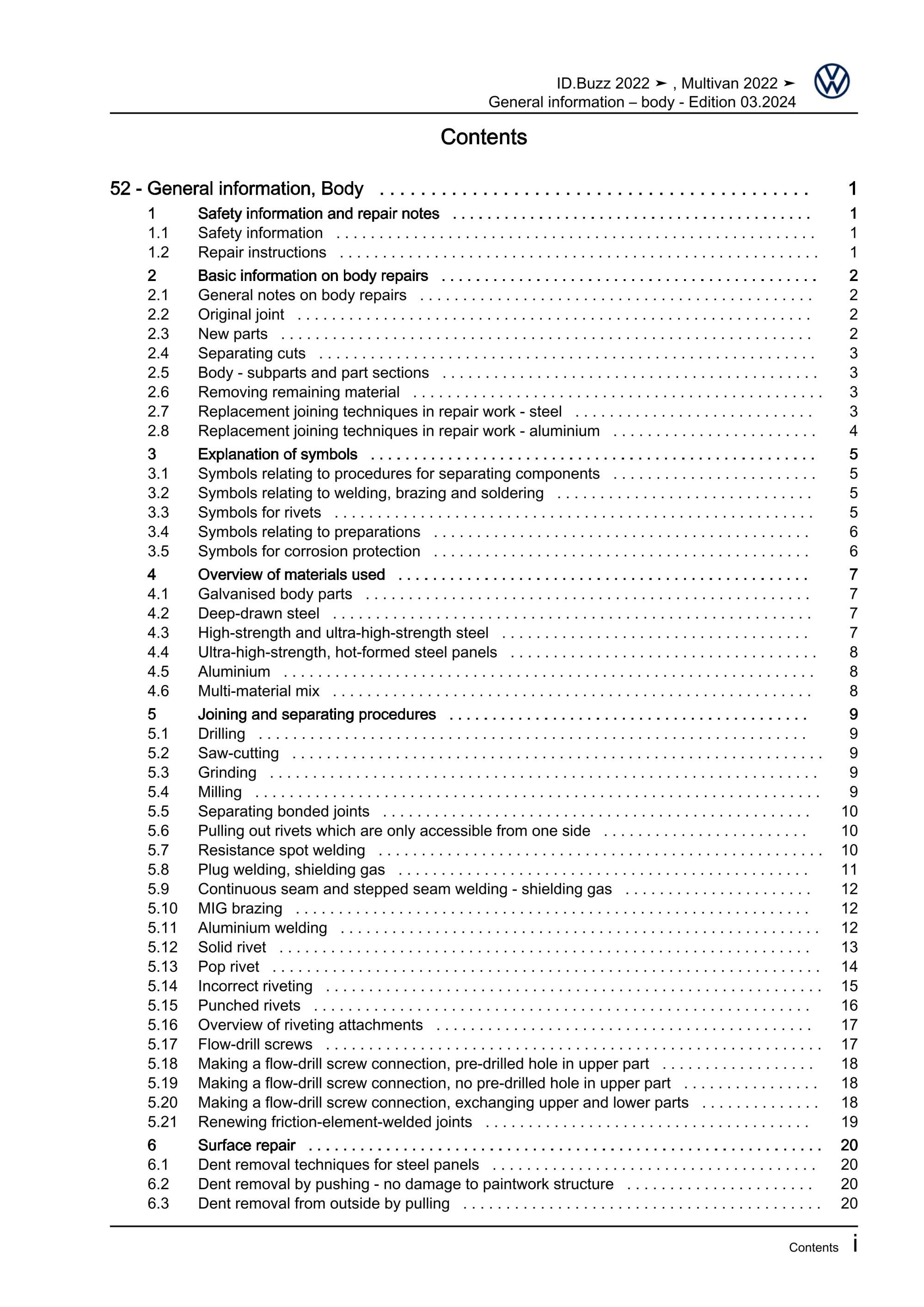 VW ID. Buzz type EB from 2022 general information body repairs manual eBook