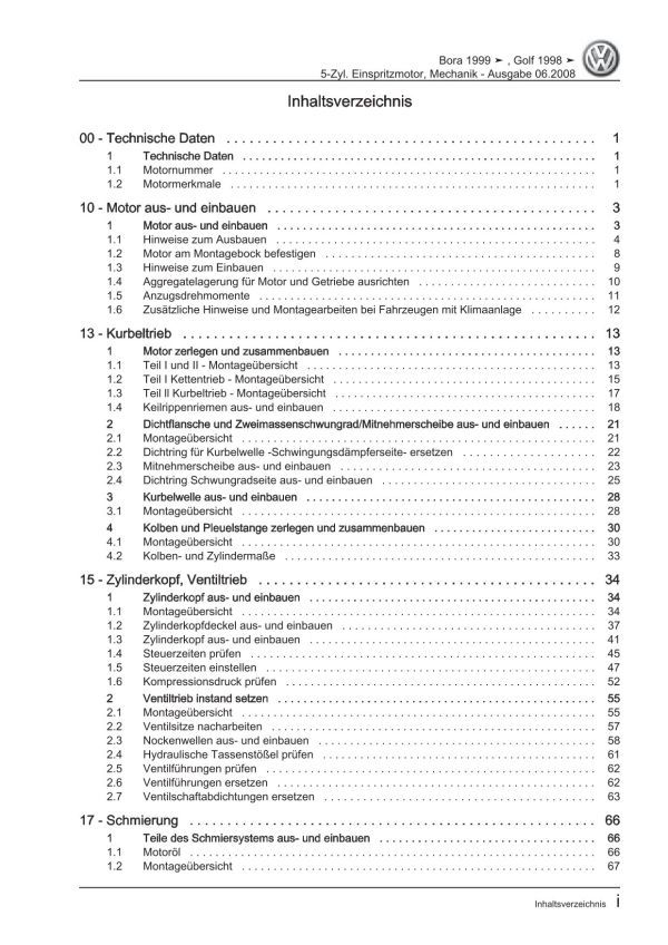 VW Jetta 1J 1998-2005 5-Zyl. Benzinmotor Mechanik 2,3l 150 PS Reparaturanleitung