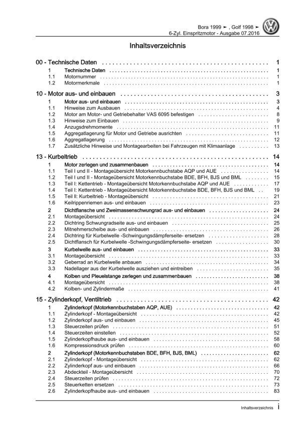 VW Jetta 1J 1998-2005 6-Zyl. Benzinmotor 2,8l 3,2l 204-241 PS Reparaturanleitung