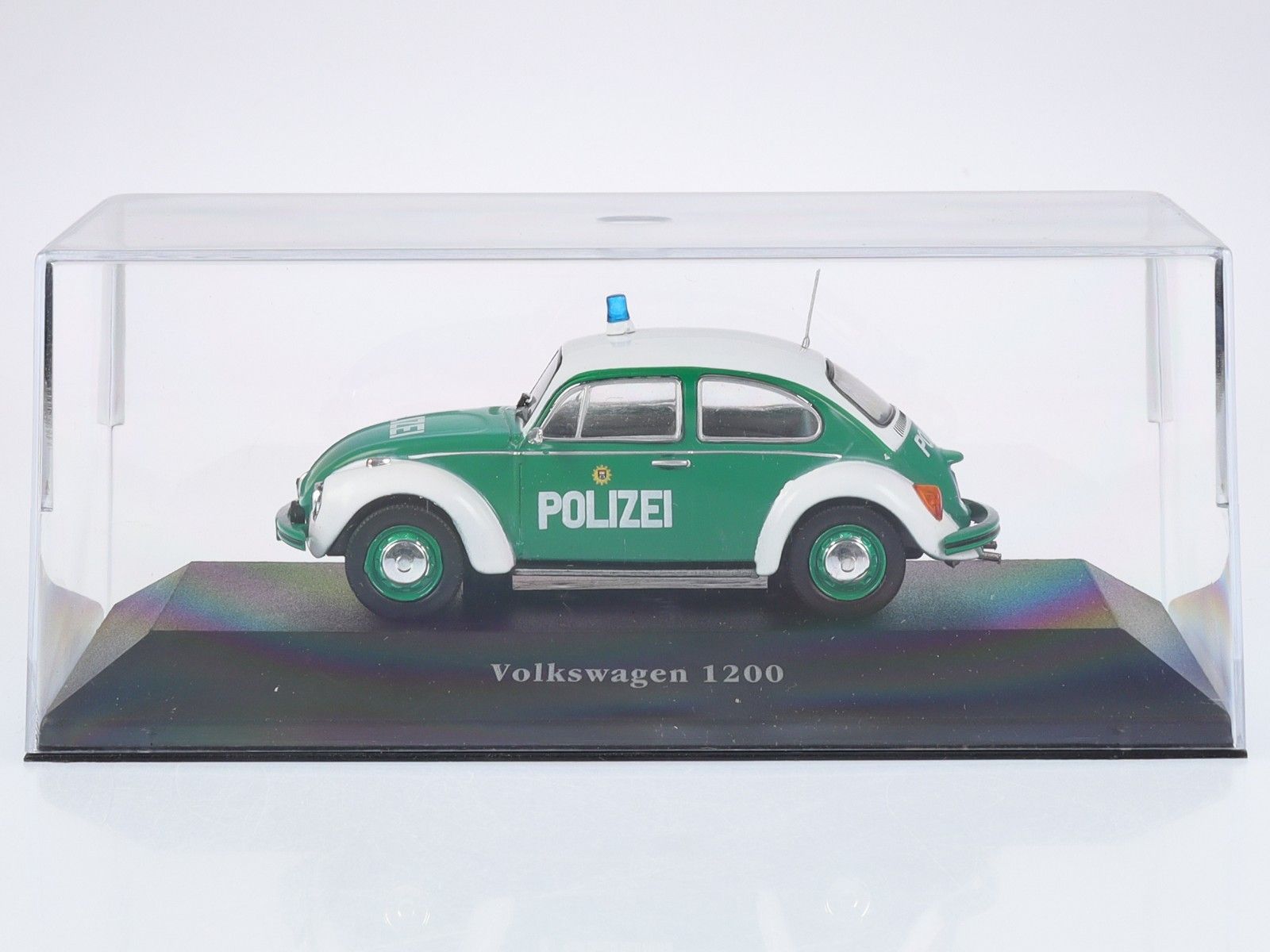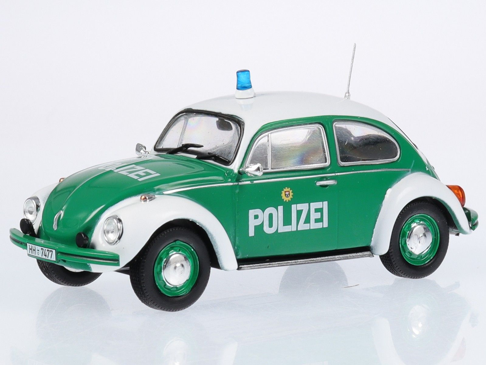 VW Käfer 1303 Polizei Hamburg Modellauto in Vitrine 7598001 Atlas 1:43