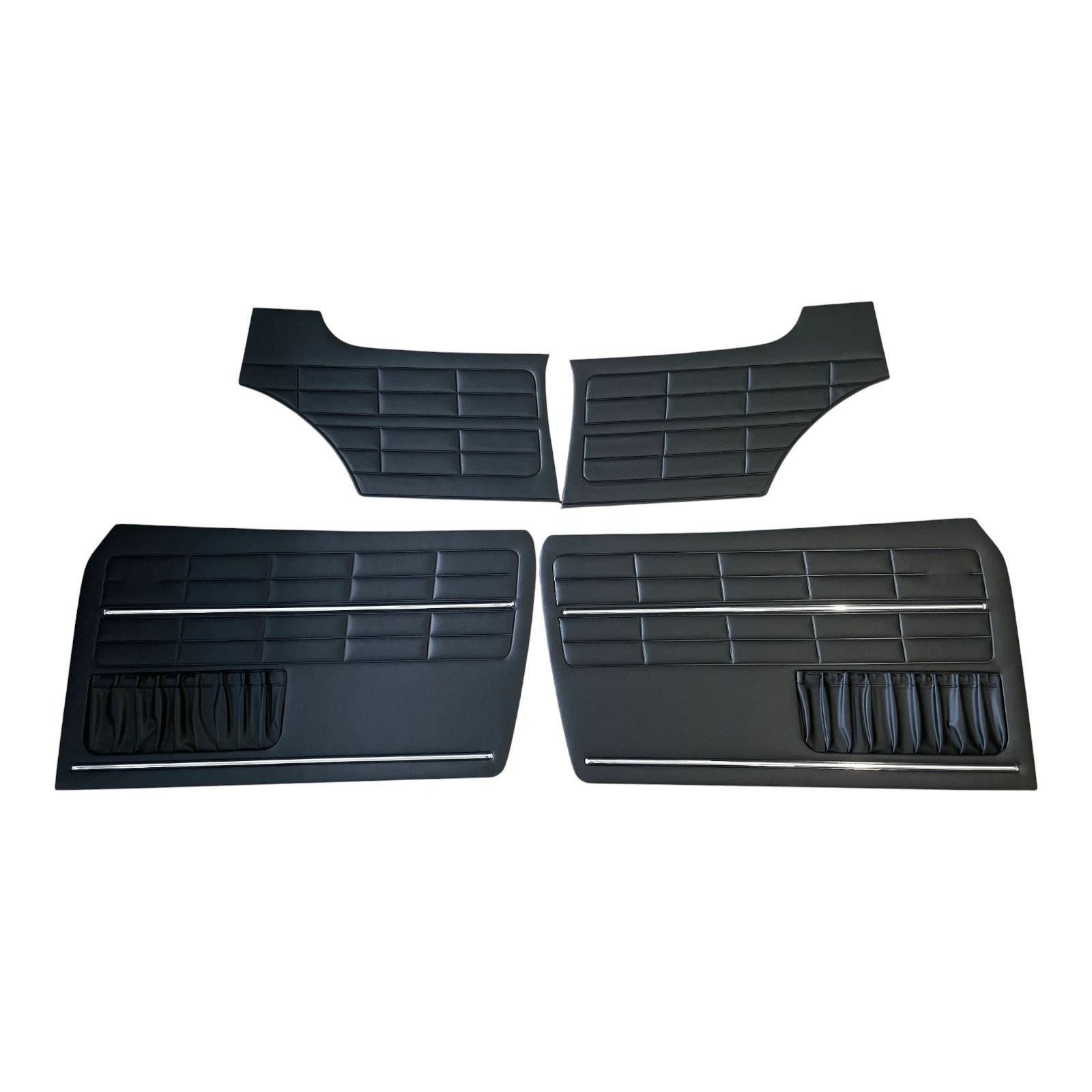4 Türverkleidungen VW Karmann Ghia Typ 14 Die Fahrzeugliste finden Sie weiter unten im Text! Verwendung: Karosserie Türverkleidung Details: Neuteil in Erstausrüsterqualität VW Karman Ghia Cabriolet und Coupe 2 x Türverkleidungen vorne 2 x Verkleidungen hinten Farbe: Schwarz Mit Chromleiste und Tasch