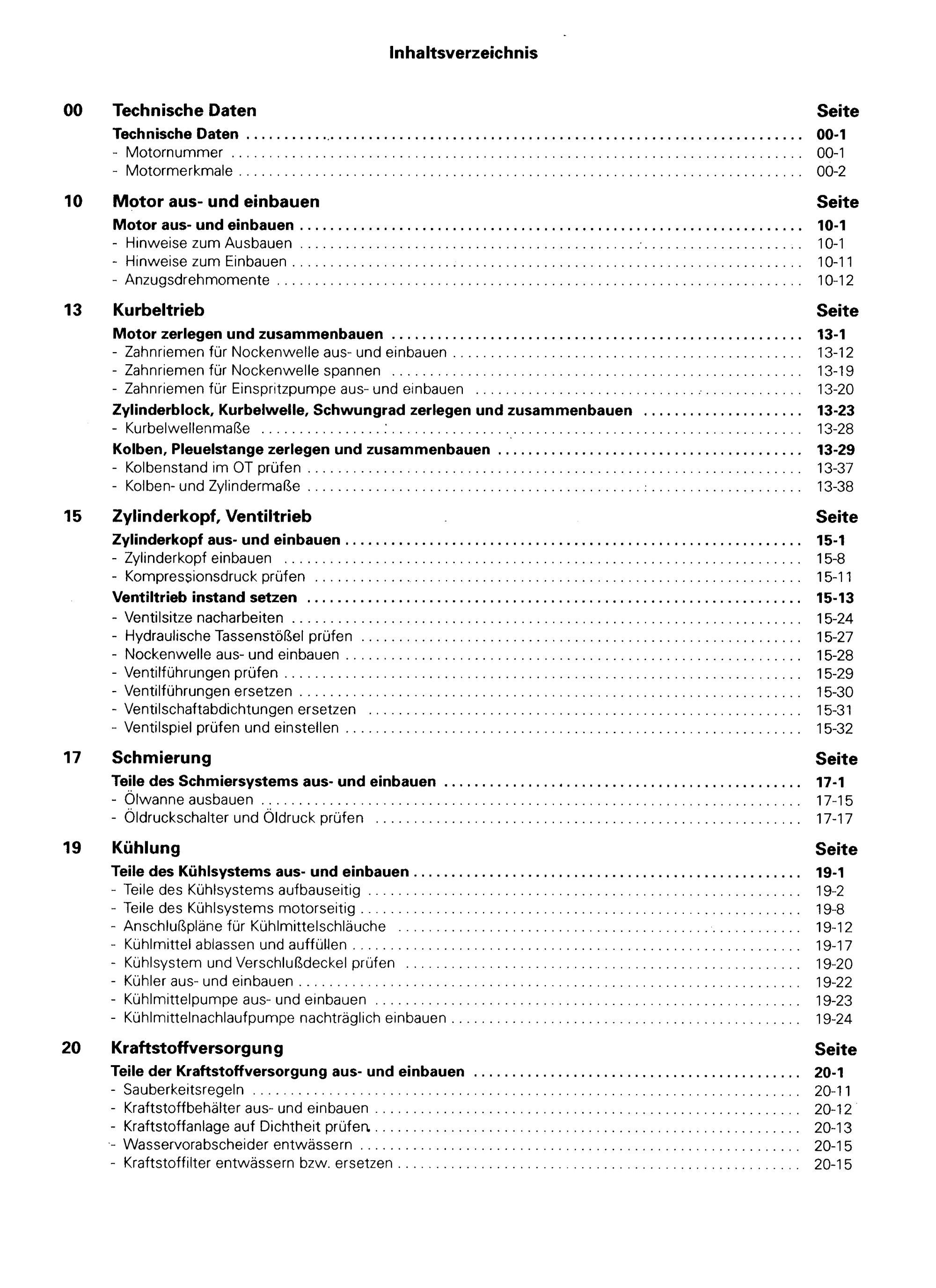 Artikelart: VW Service Reparaturleitfaden Thema / Inhalt: 6-Zyl. Dieselmotor (Mechanik) Kapitel: Motor-Mechanik Kraftstoffart: Diesel Motorkennbuchstaben (MKB): CP, DV, DW, ACL, ACT, 1G, 1S Motorleistung in kW/PS: 51, 55, 68, 70, 75 kW / 70, 75, 92, 95, 102 PS Hubraum: 2,4l
