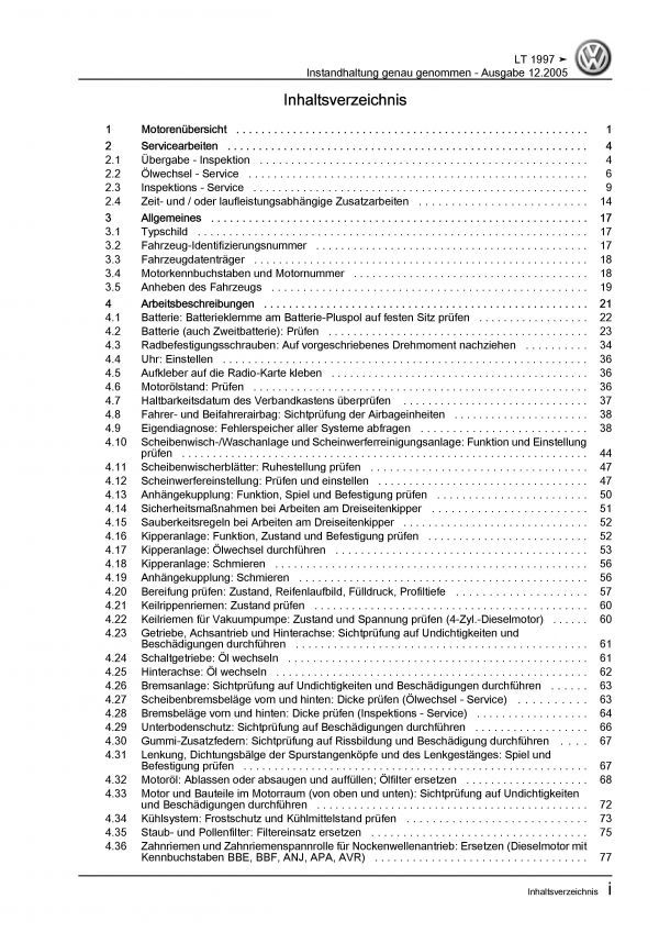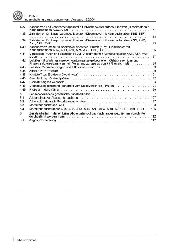 VW LT Typ 2D 1996-2006 Instandhaltung Inspektion Wartung Reparaturanleitung