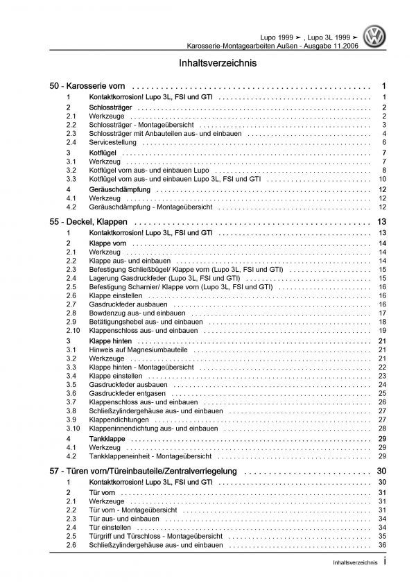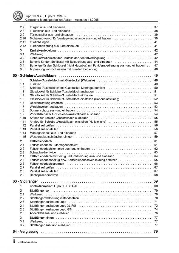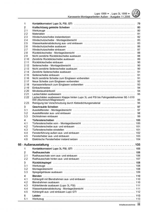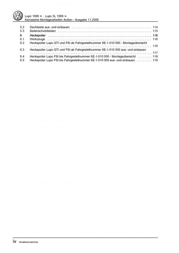 VW Lupo 3L Typ 6E 1998-2006 Karosserie Montagearbeiten Außen Reparaturanleitung