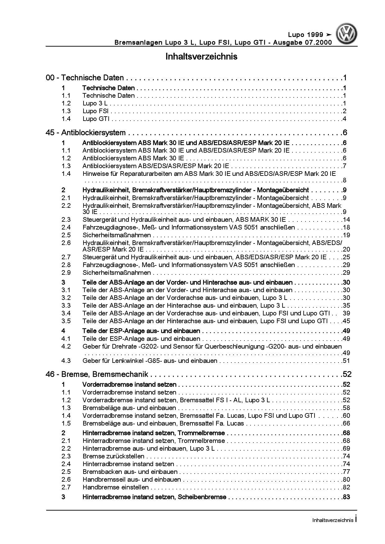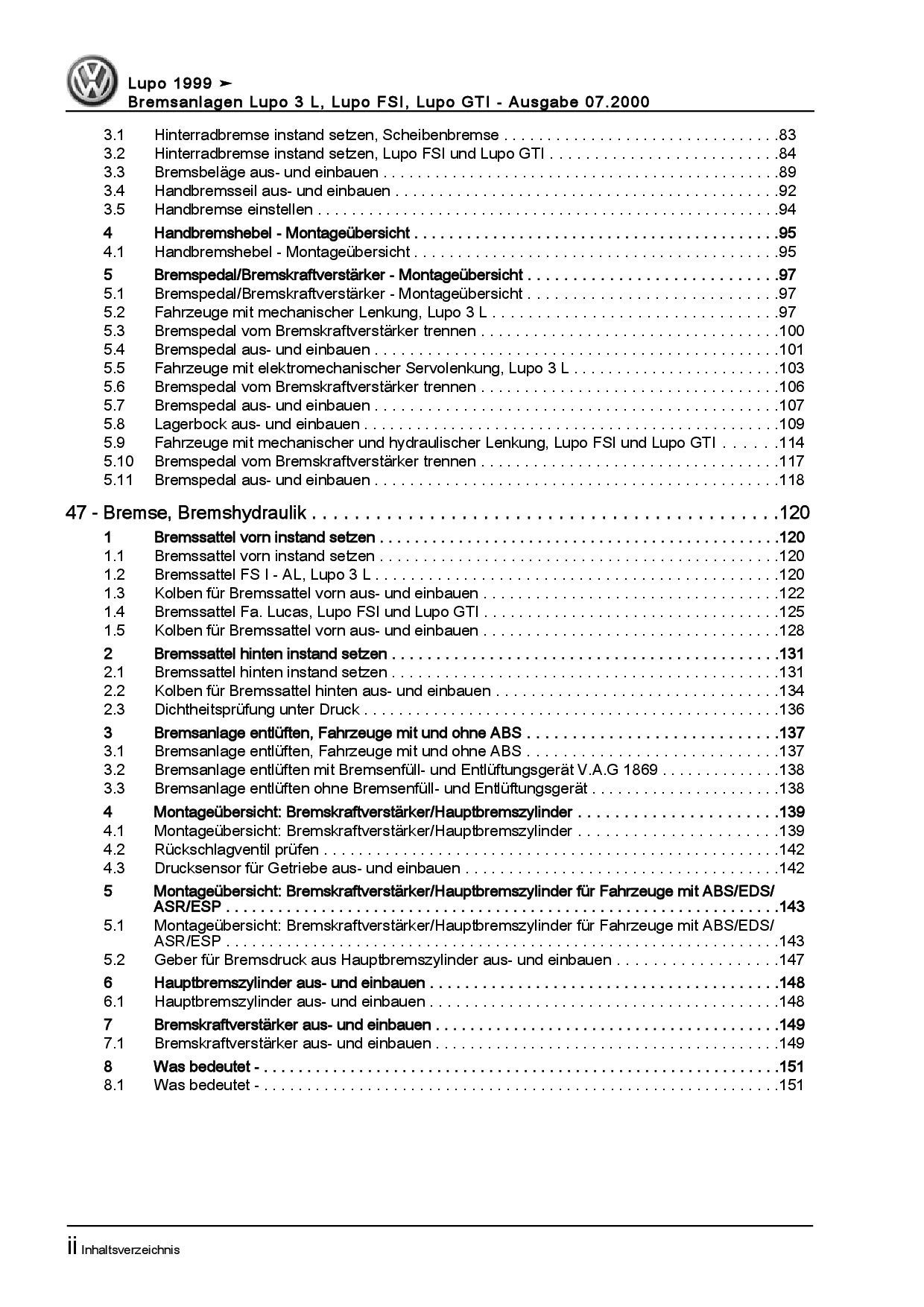 VW Lupo GTI 1998-2006 Bremsanlagen Bremsen System Reparaturanleitung