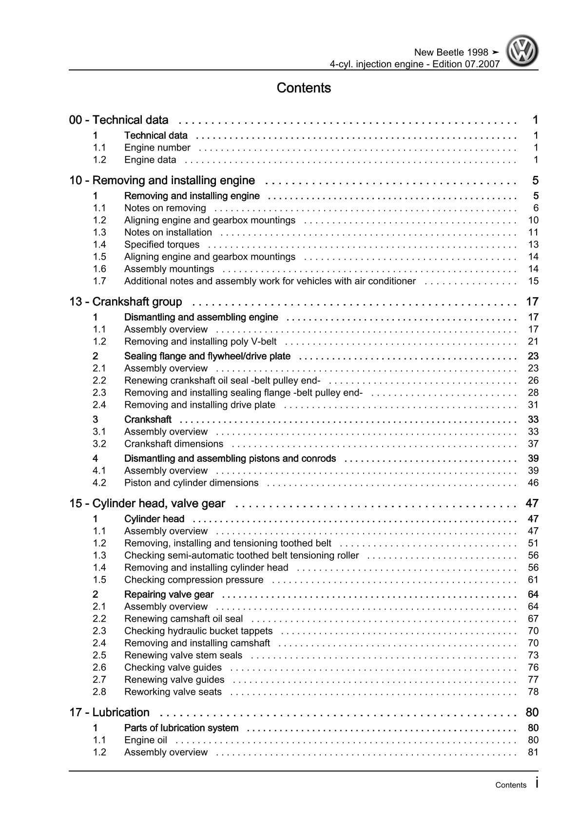 VW New Beetle 9C 1997-2010 4-cyl. 2.0l petrol engines 115 hp repair manual pdf