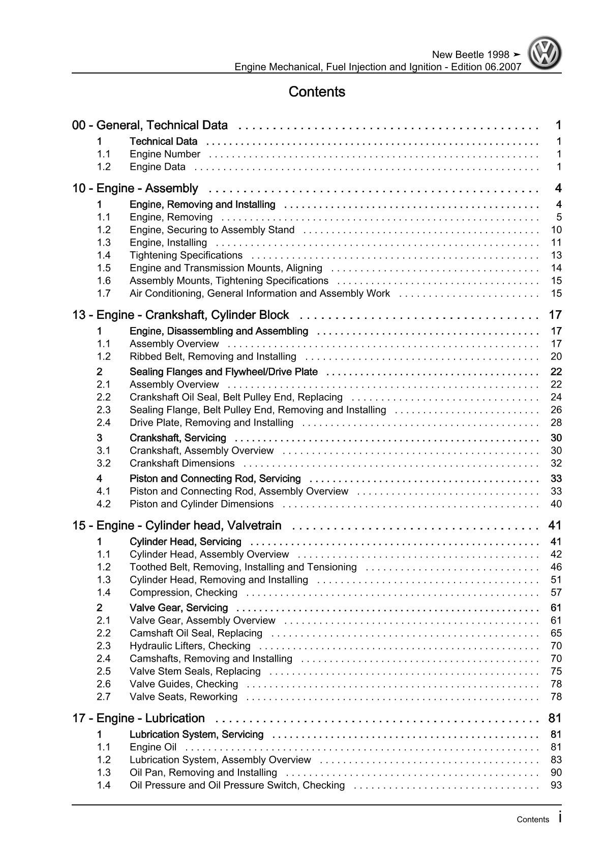 VW New Beetle 9C (97-10) 4-cyl. injection engine mechanics 1.8l repair manual