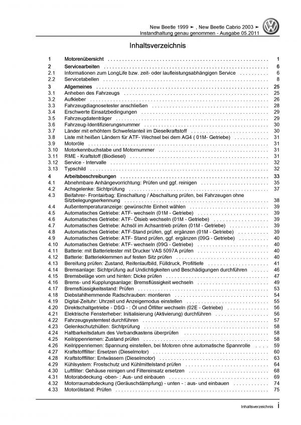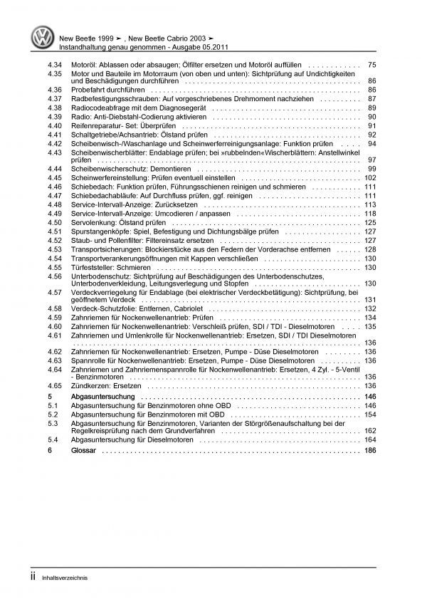 VW New Beetle 9C (97-10) Instandhaltung Inspektion Wartung Reparaturanleitung