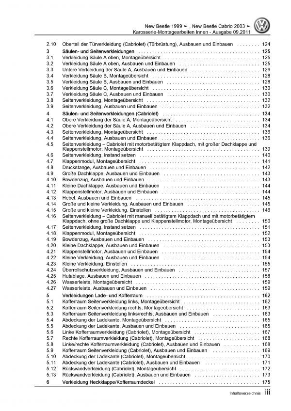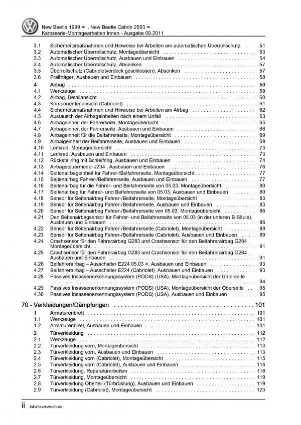 VW New Beetle Cabrio (03-10) Karosserie Montagearbeiten Innen Reparaturanleitung