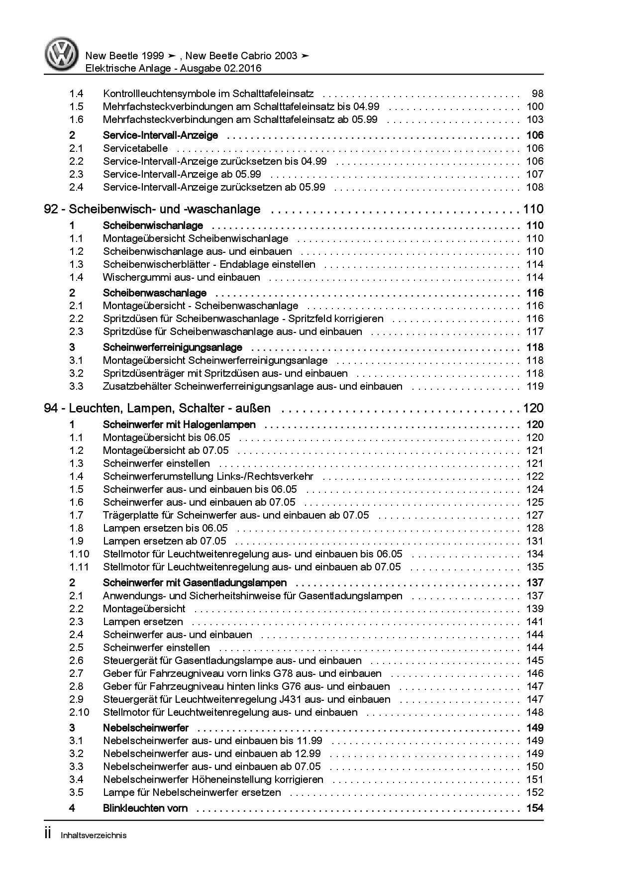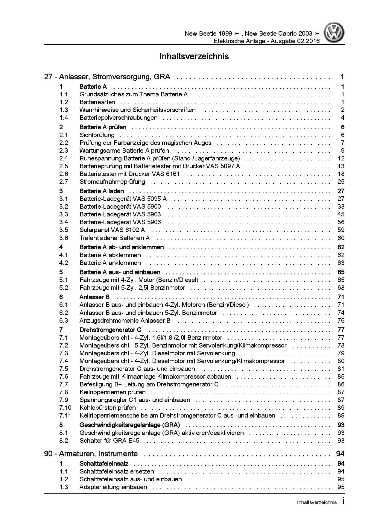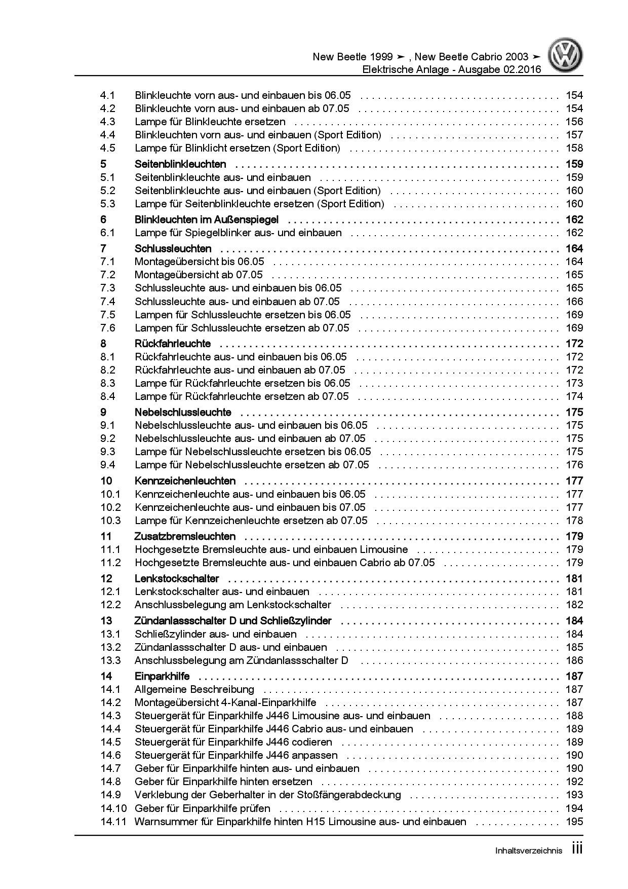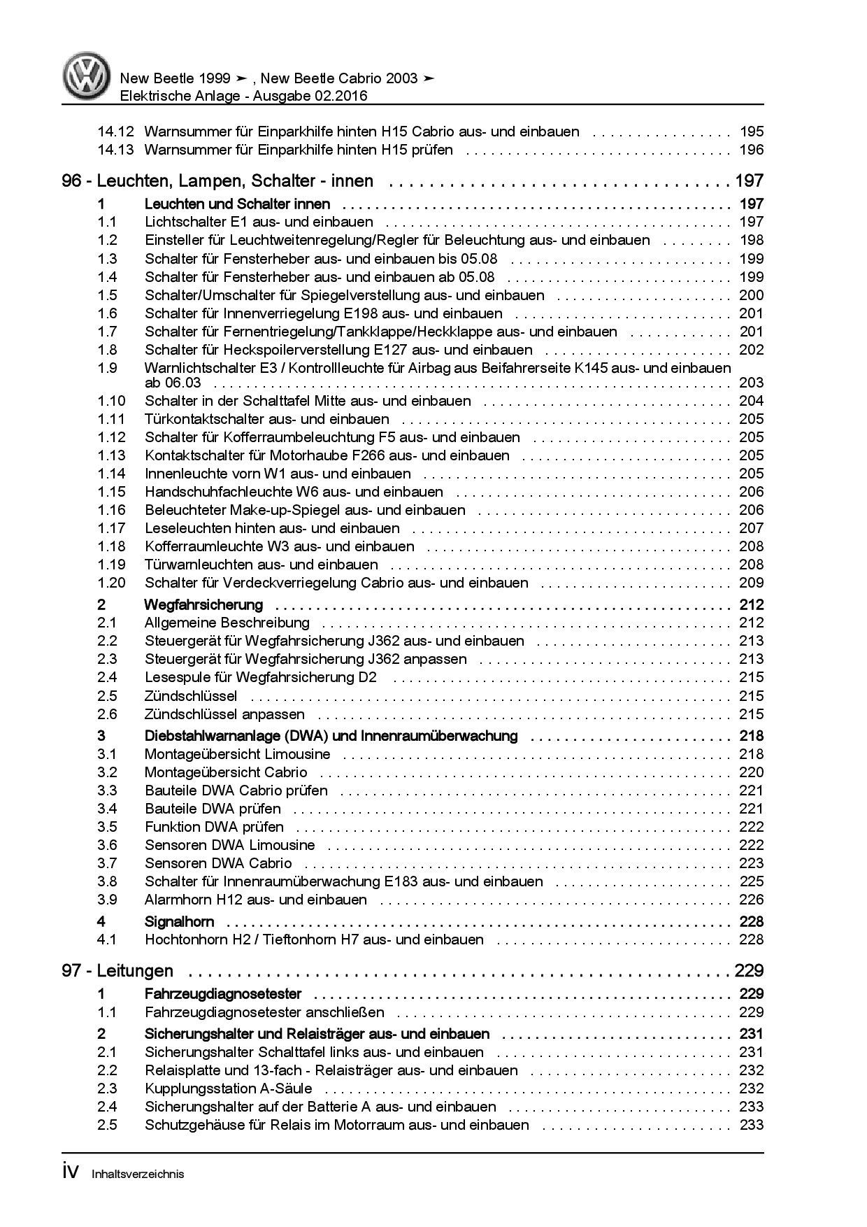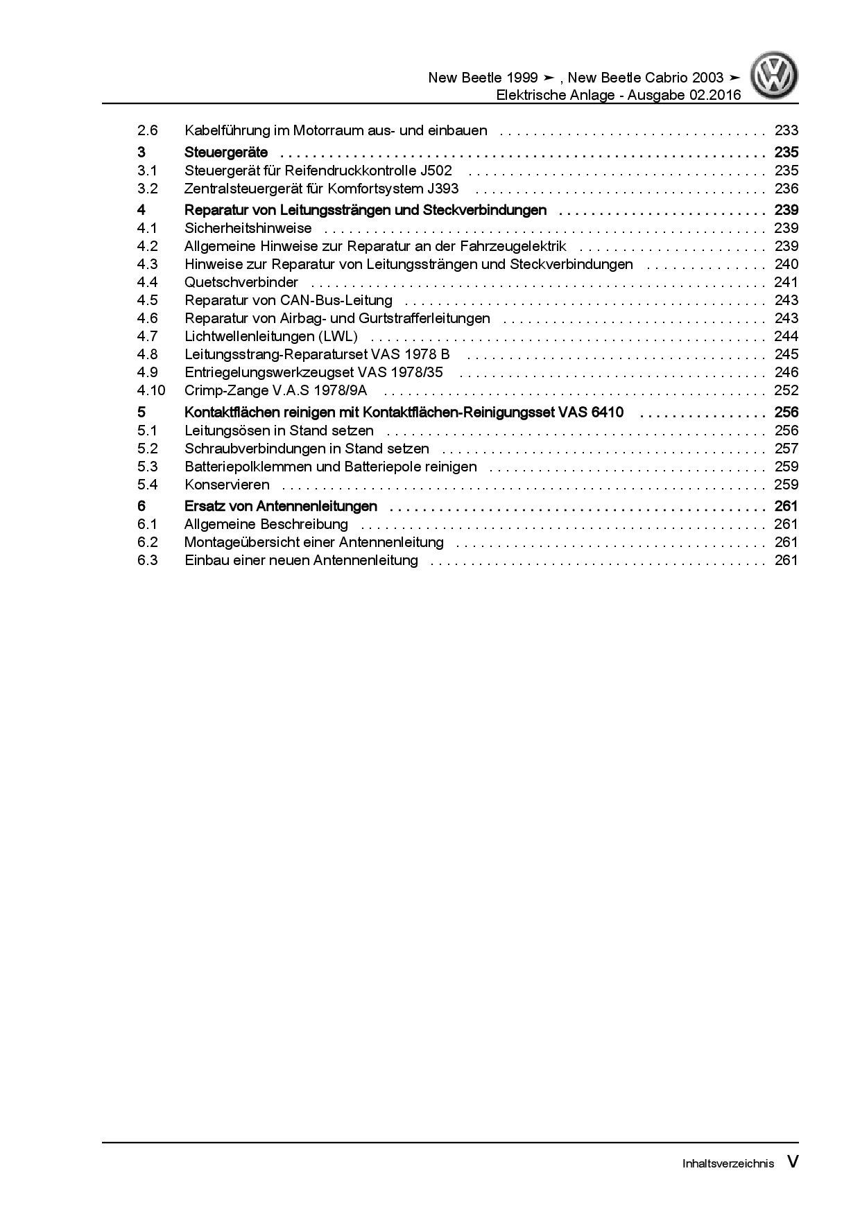 VW New Beetle Cabrio 1Y (03-10) Elektrische Anlage Systeme Reparaturanleitung