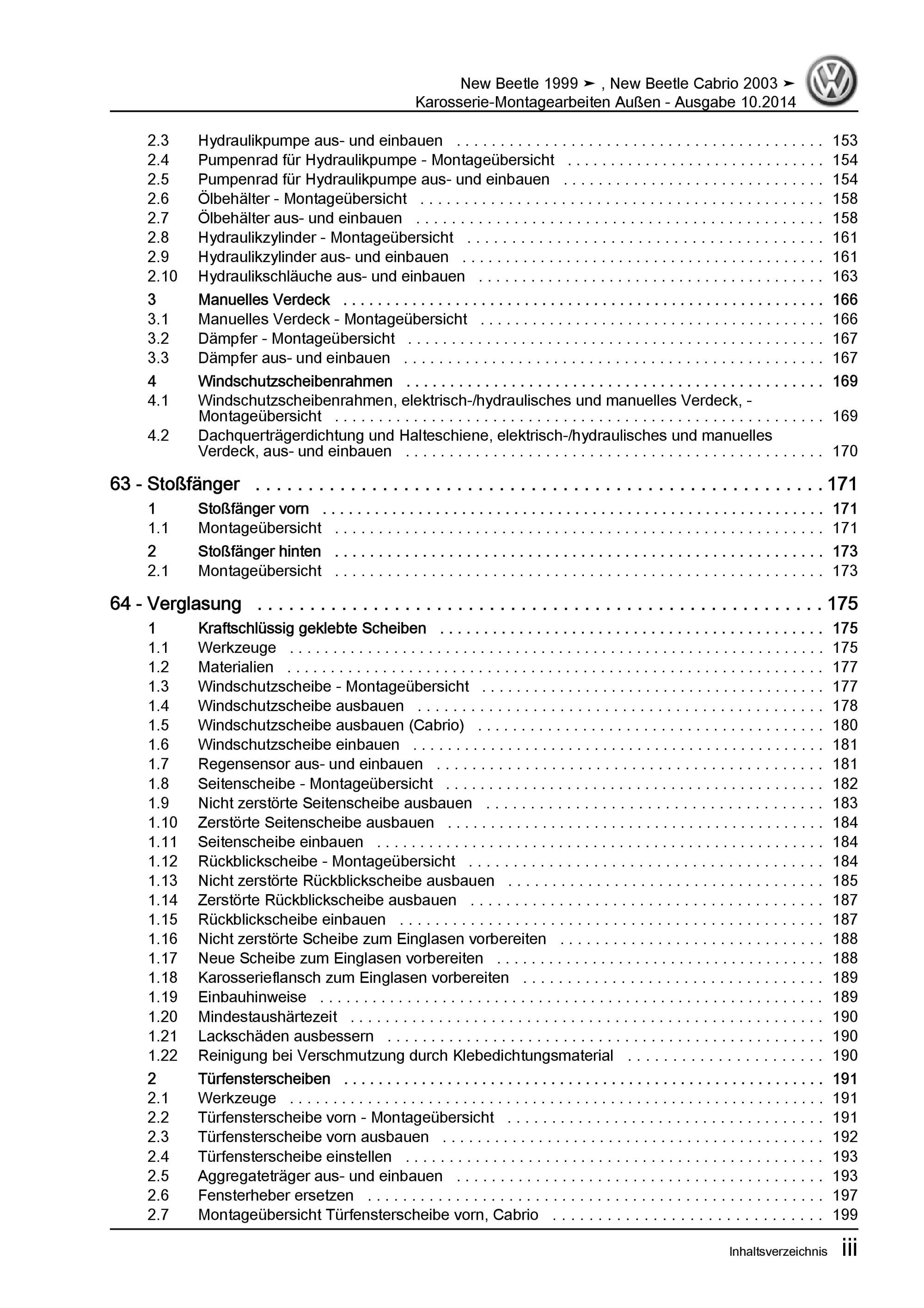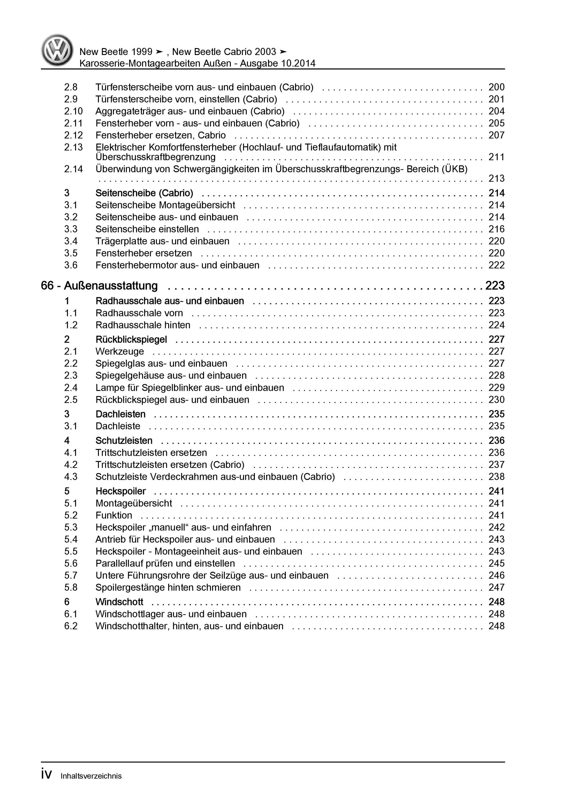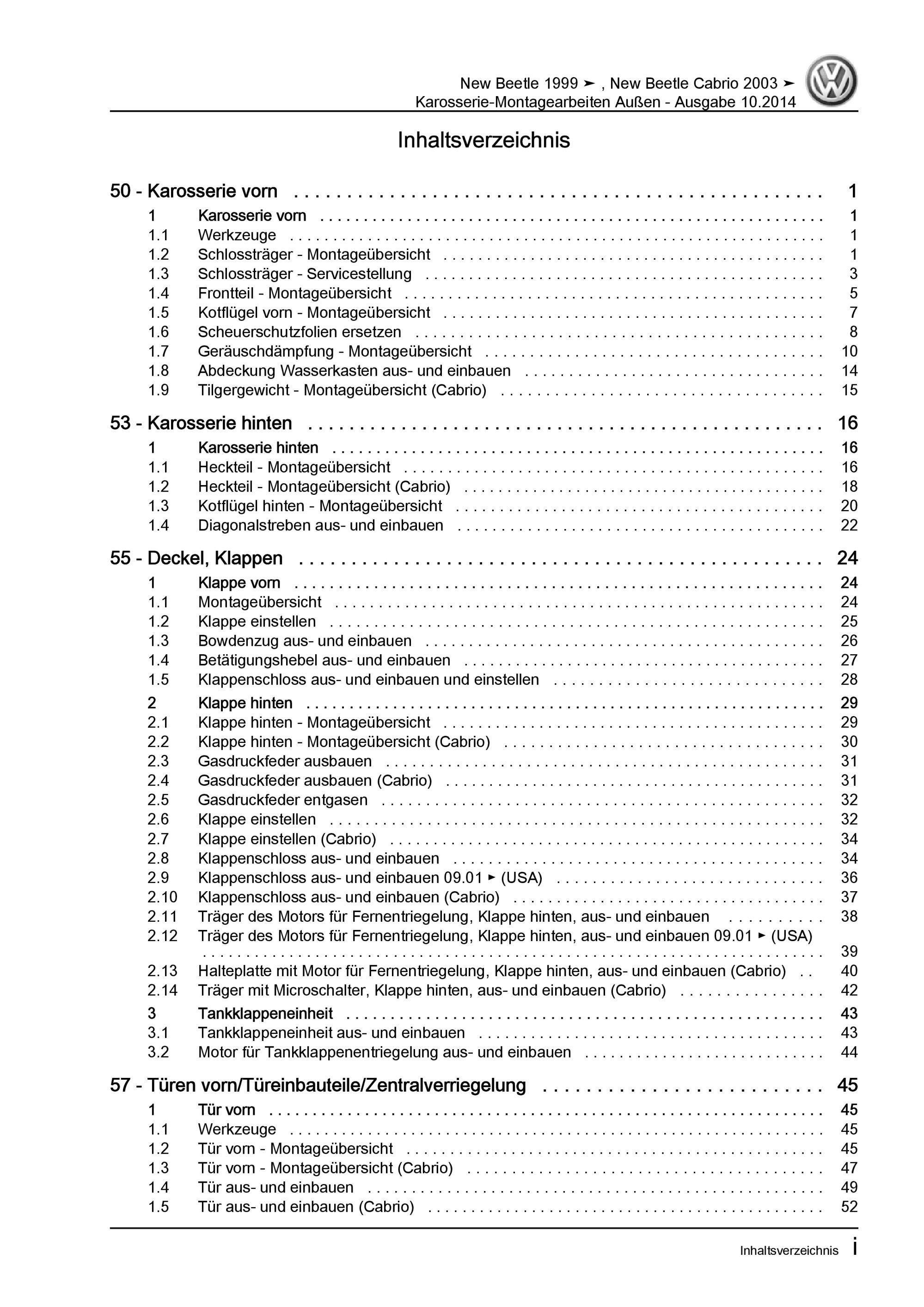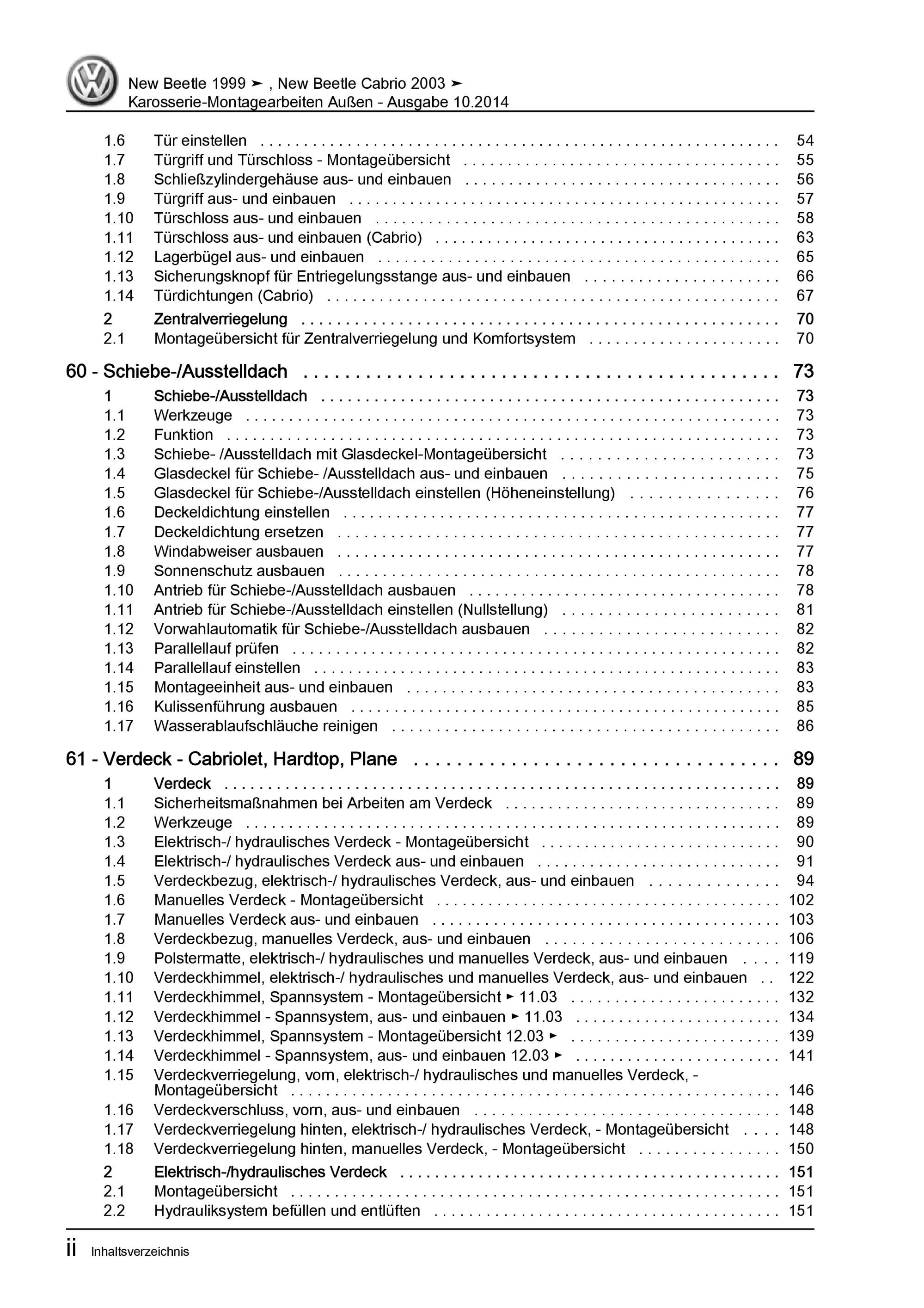 VW New Beetle Cabrio 1Y (03-10) Karosserie Montage Außen Reparaturanleitung PDF