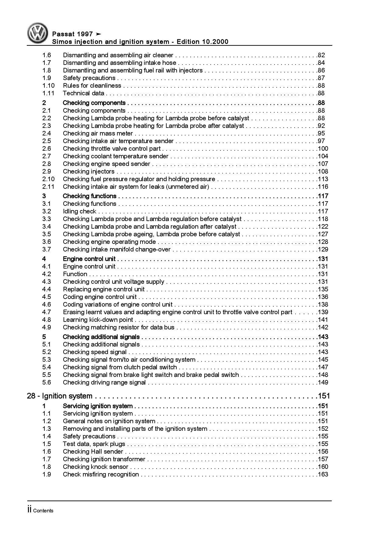 VW Passat 3B 96-05 simos injection ignition system 2.0l repair manual pdf eBook