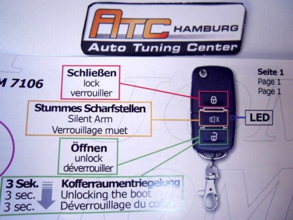 VW Passat 3B Auto Alarmanlage + Fernbedienung, Schlüssel für Zentralverriegelung