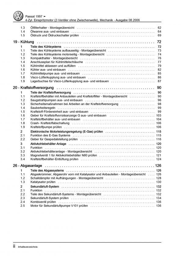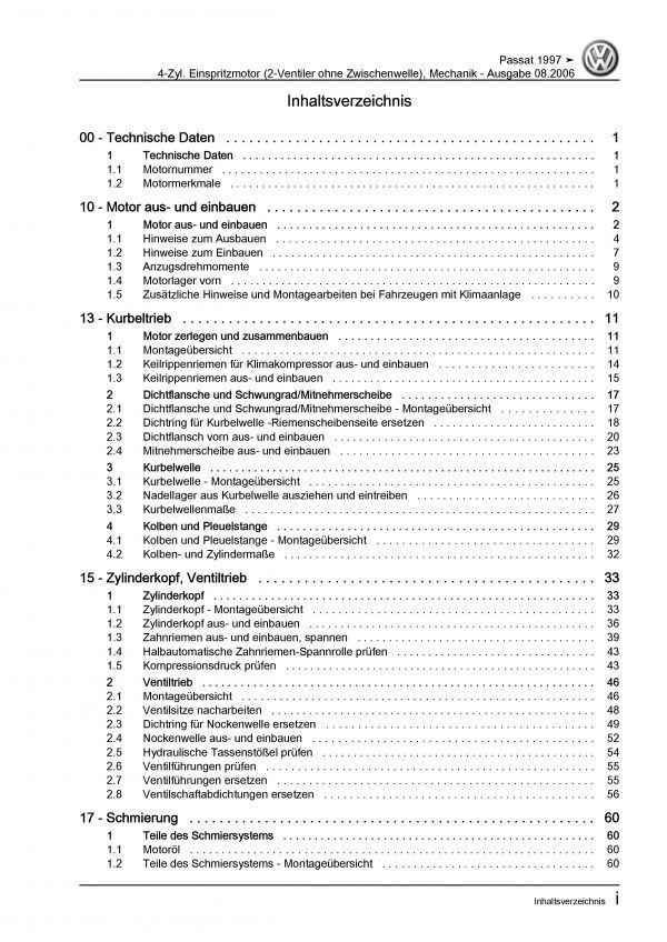 VW Passat 5 Typ 3B 1996-2005 2,0l Benzinmotor 115 PS Mechanik Reparaturanleitung