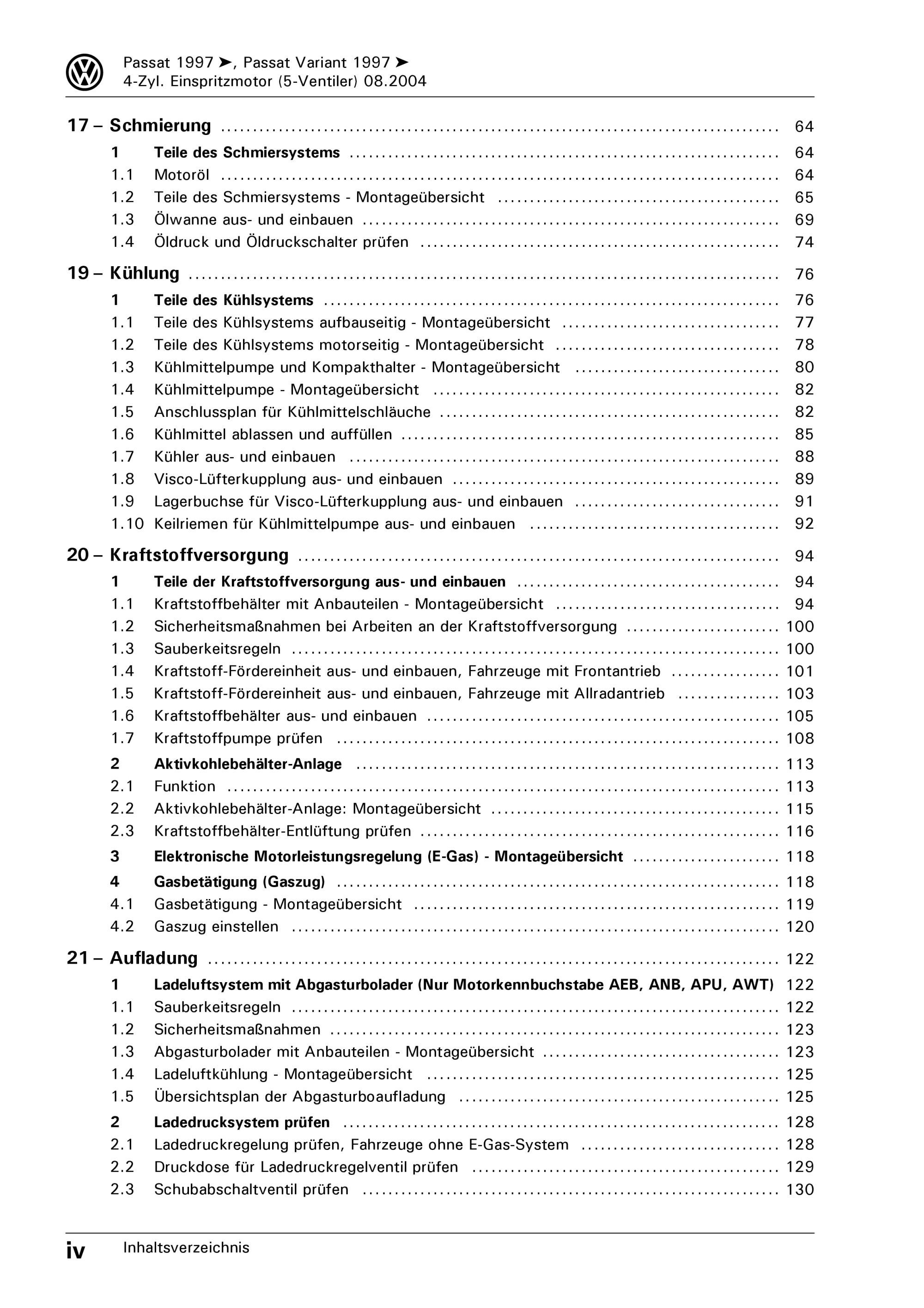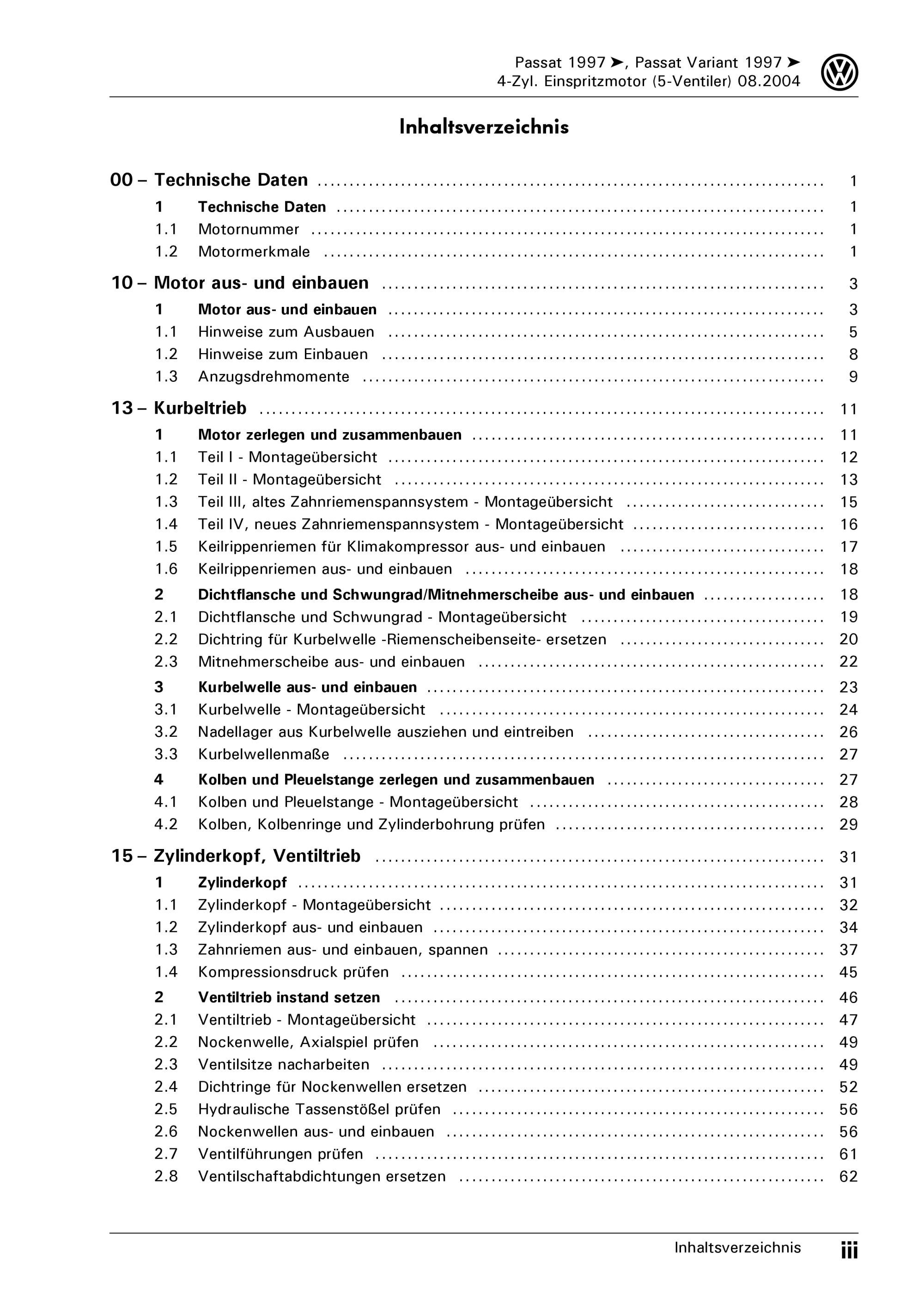 VW Passat 5 Typ 3B (96-05) 4-Zyl. 1,8l Benzinmotor 115-150 PS Reparaturanleitung