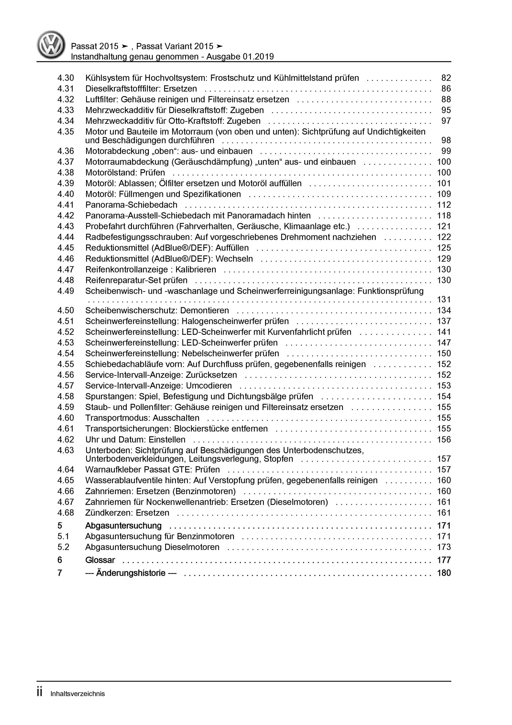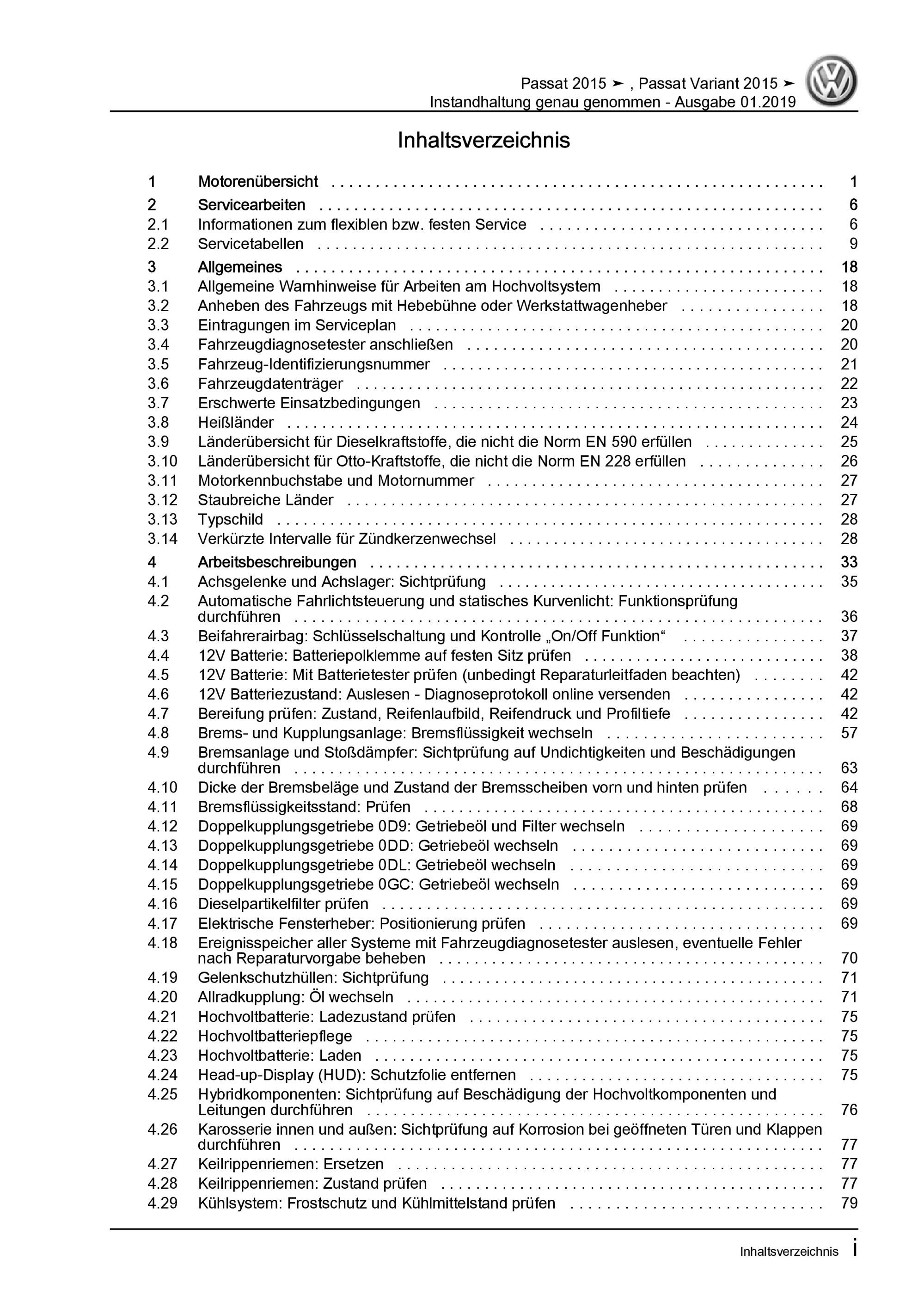 VW Passat 8 Typ 3G 2014-2019 Instandhaltung Inspektion Reparaturanleitung