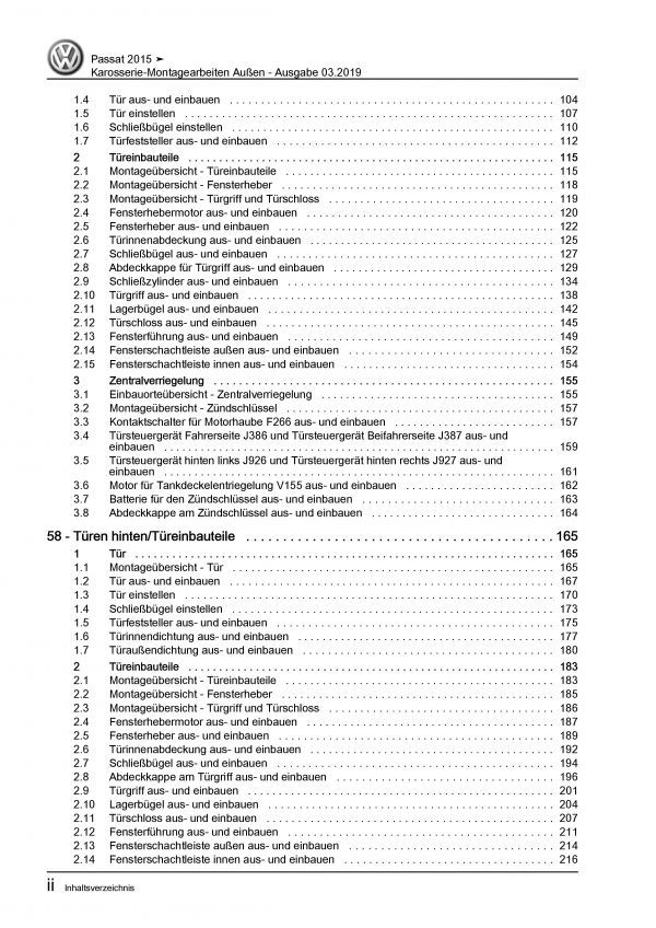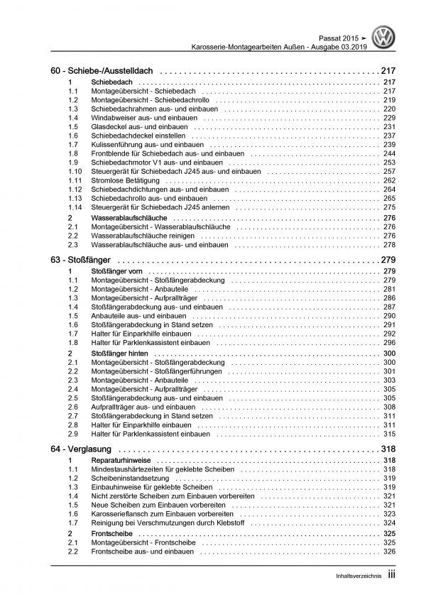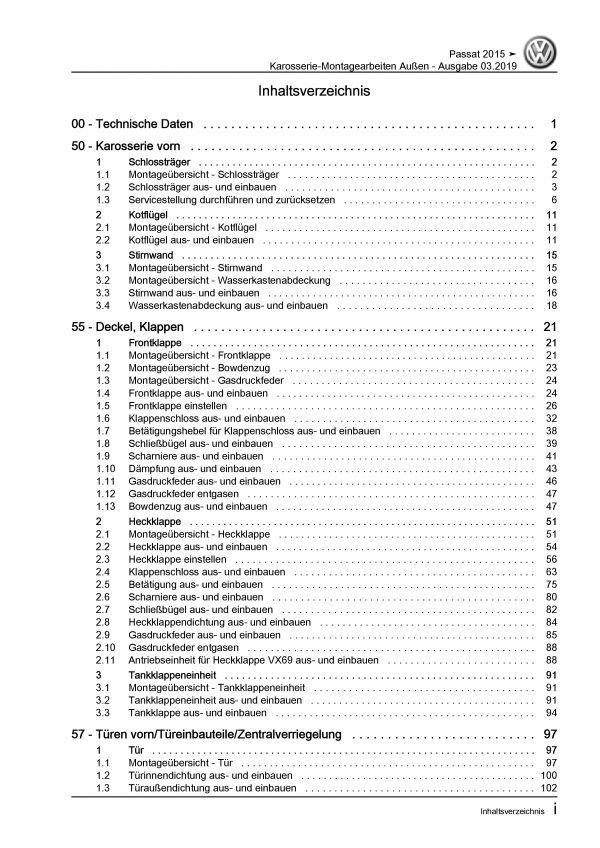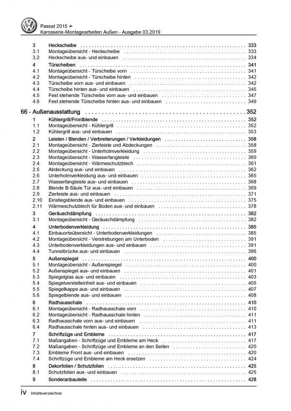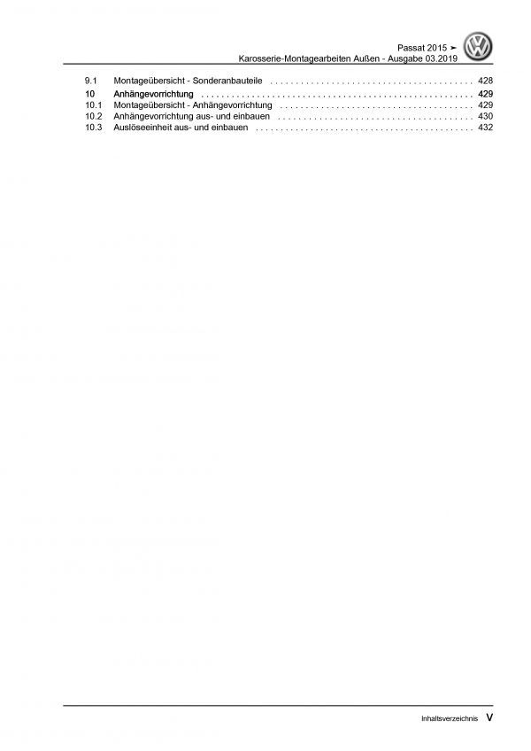 VW Passat 8 Typ 3G 2014-2019 Karosserie Montagearbeiten Außen Reparaturanleitung