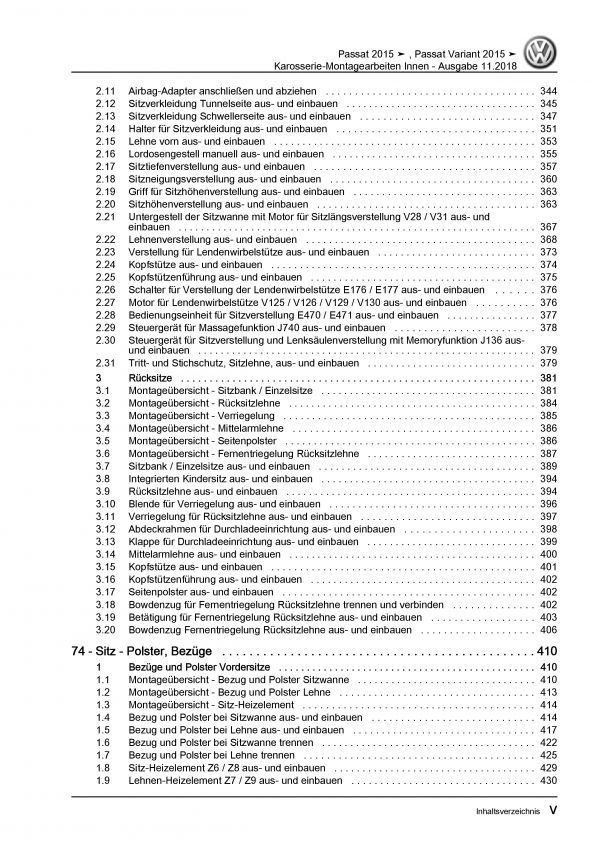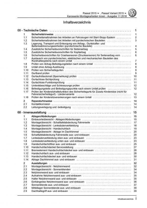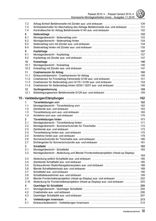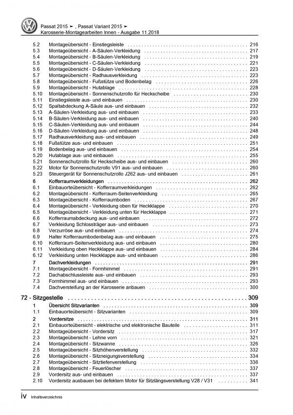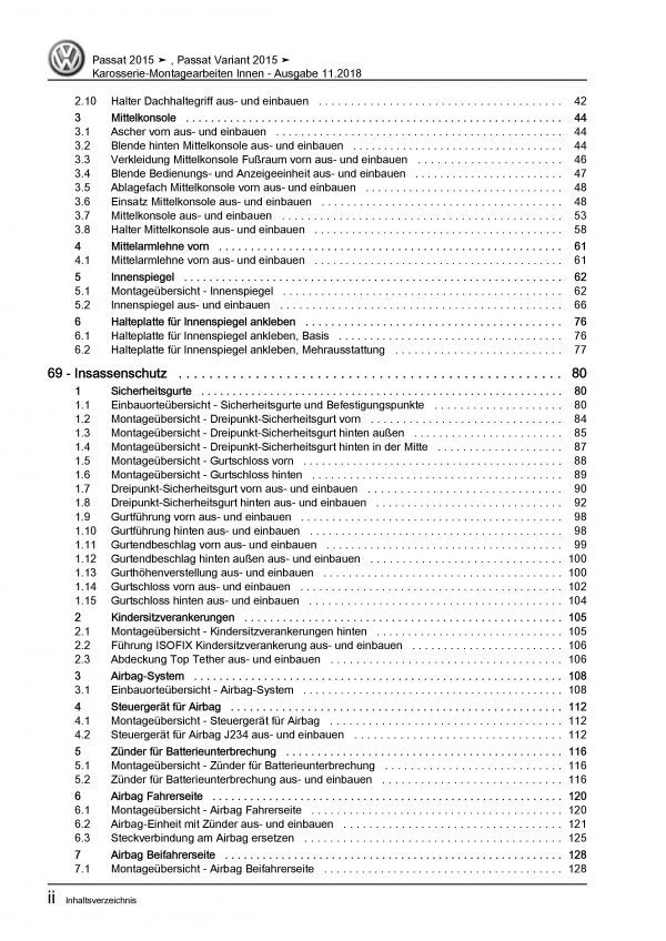 VW Passat 8 Typ 3G 2014-2019 Karosserie Montagearbeiten Innen Reparaturanleitung