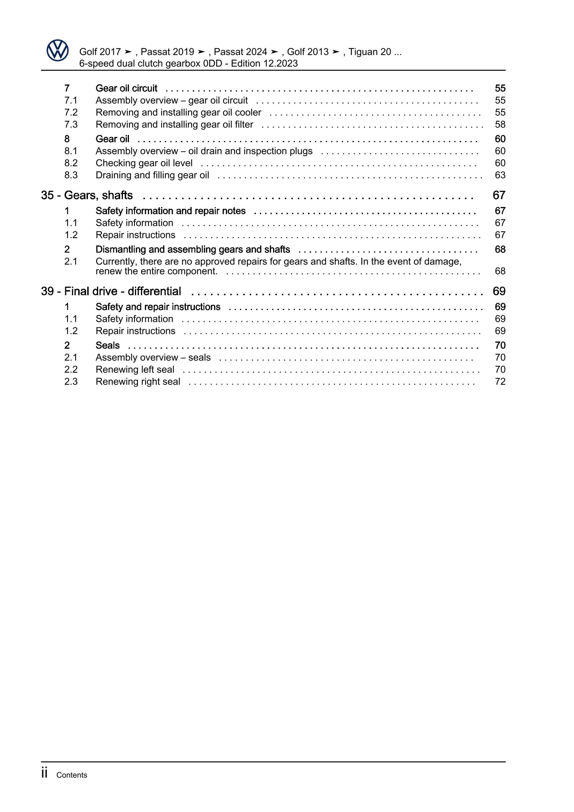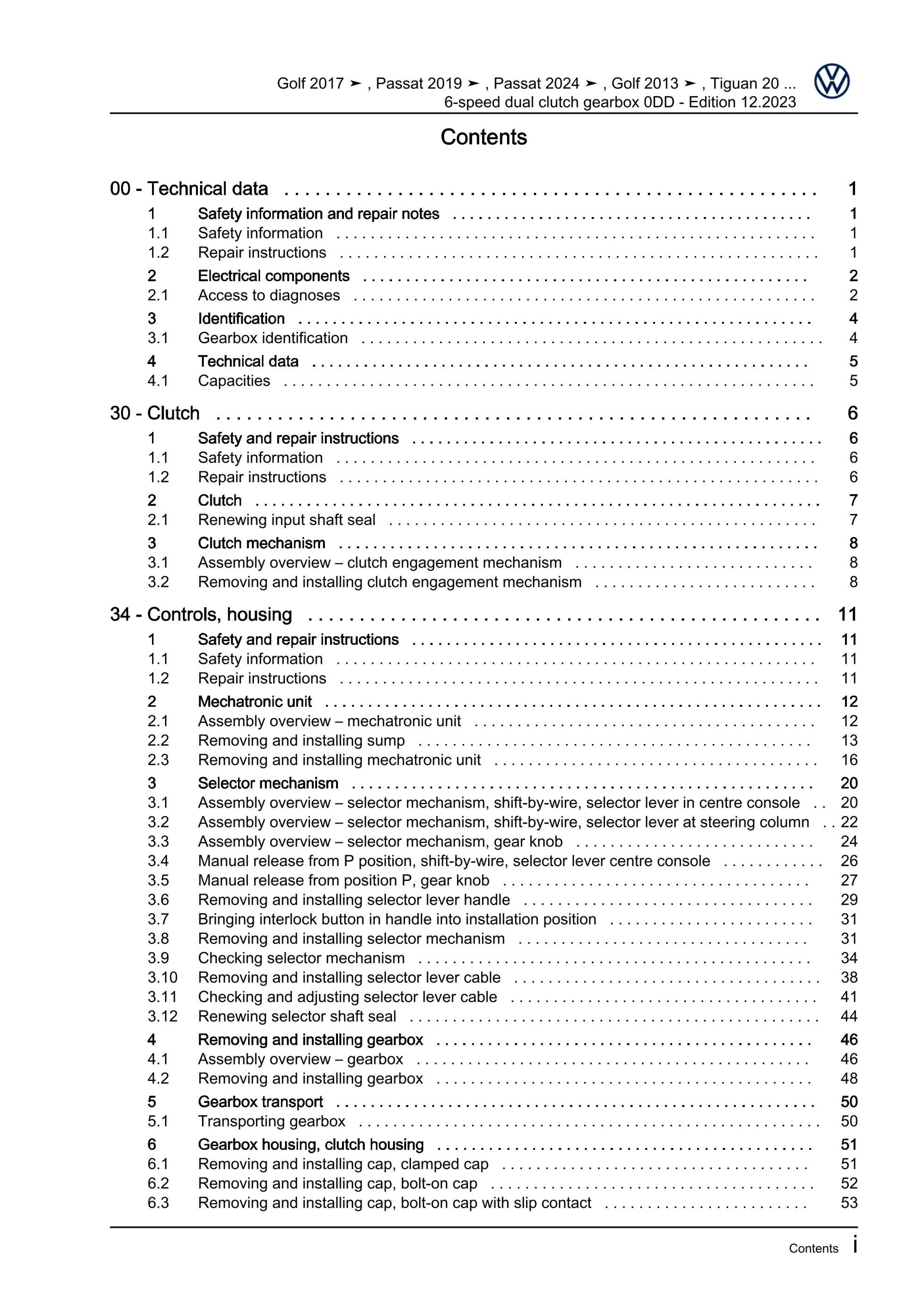 VW Passat 9 CJ from 2023 6 speed dual clutch gearbox 0DD repair workshop eBook
