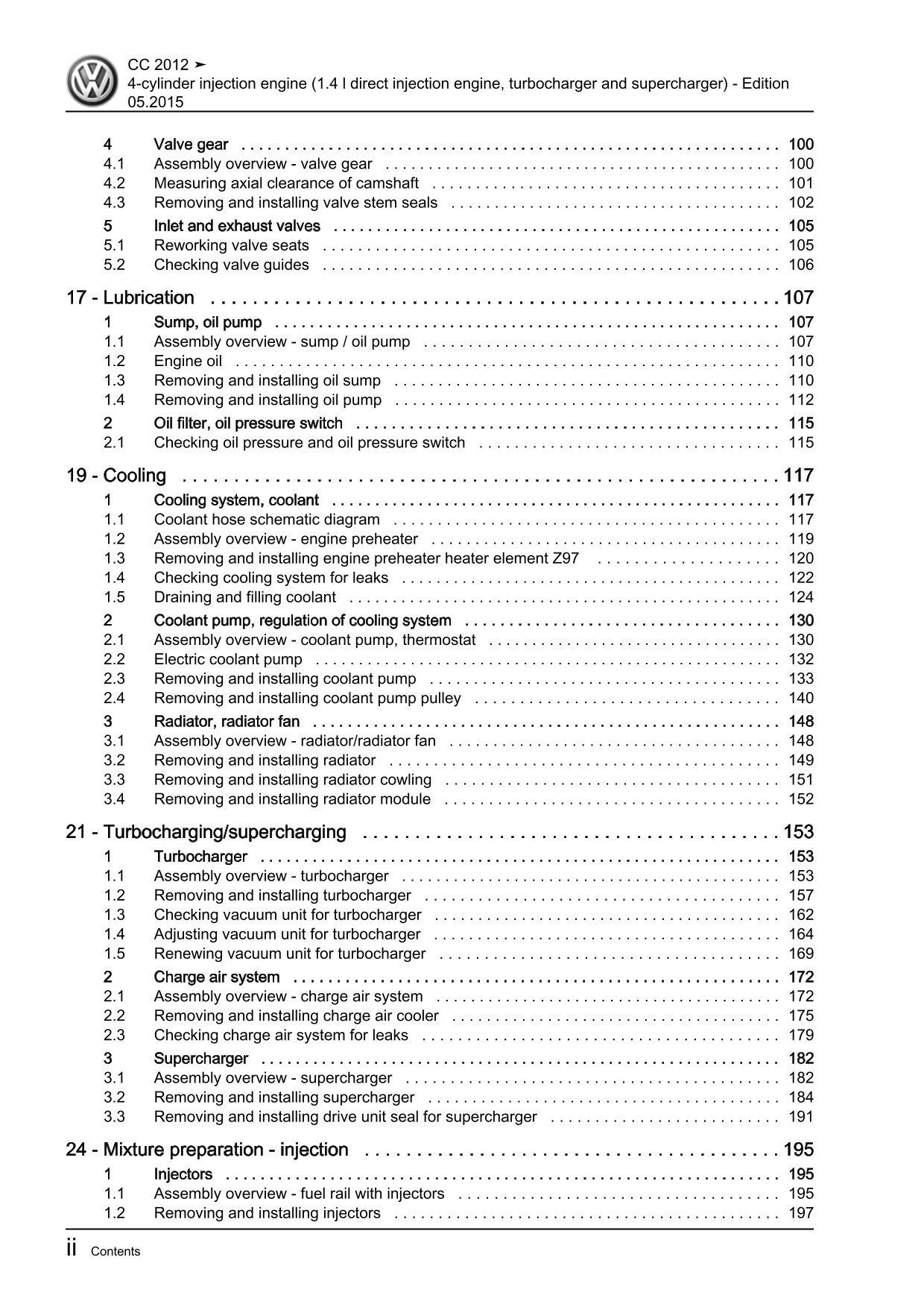 VW Passat CC 35 12-16 4-cyl 1.4l petrol engines 160 hp repair workshop pdf eBook