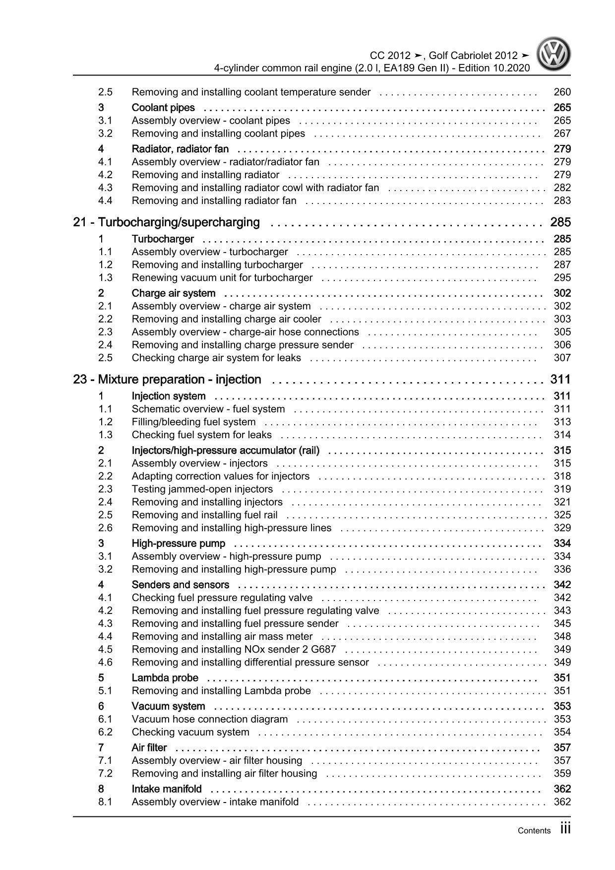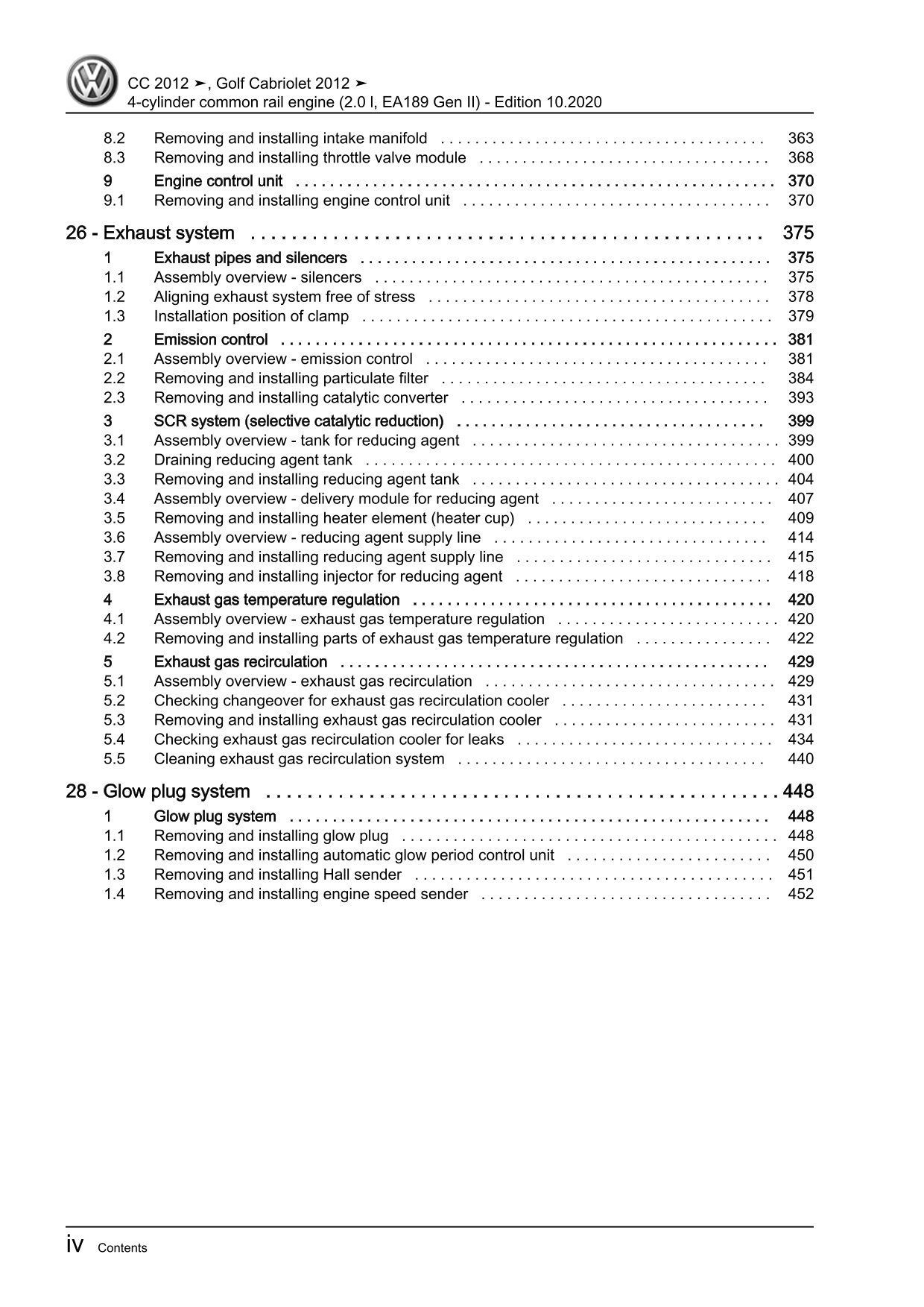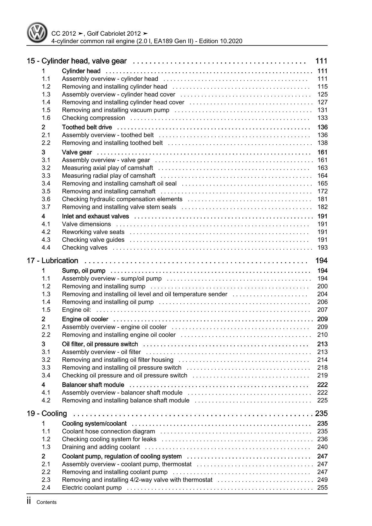 VW Passat CC 35 12-16 4-cyl 2.0l diesel engines 136-177 hp repair workshop eBook