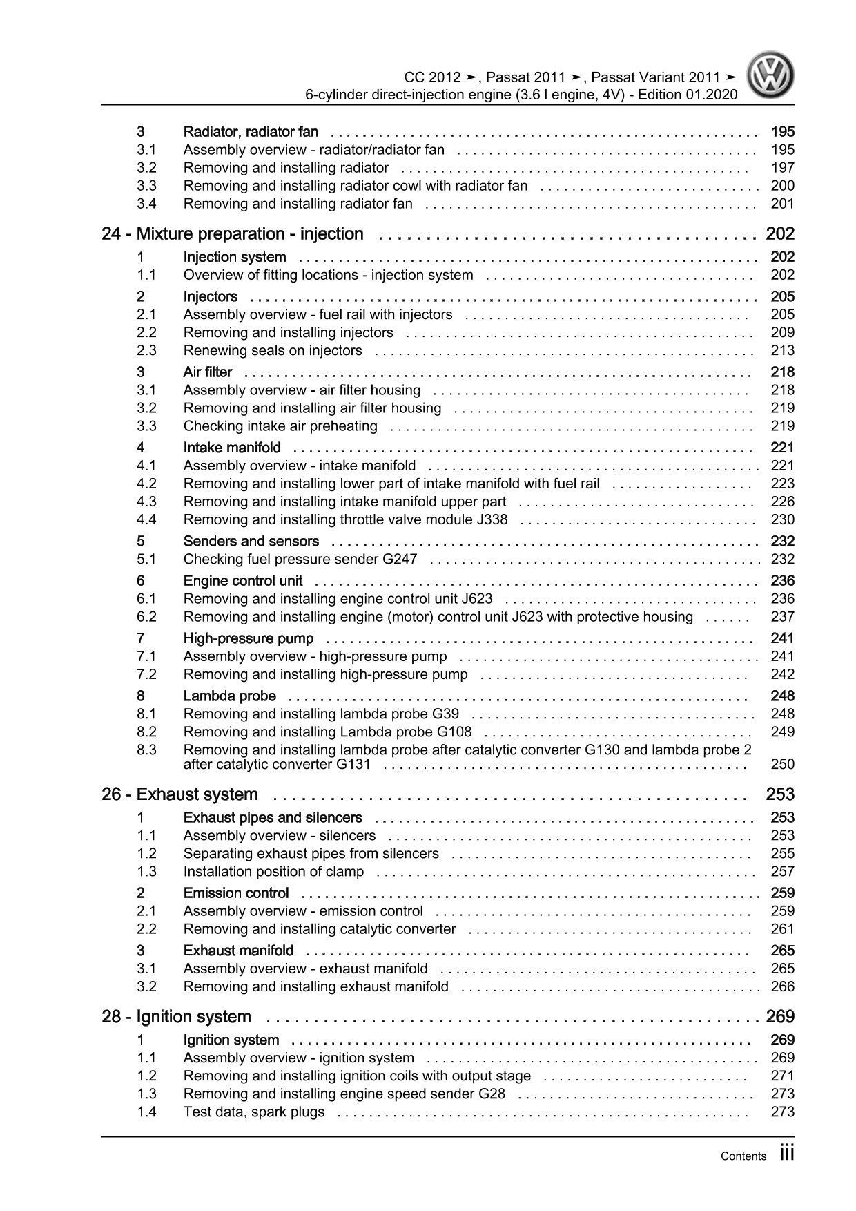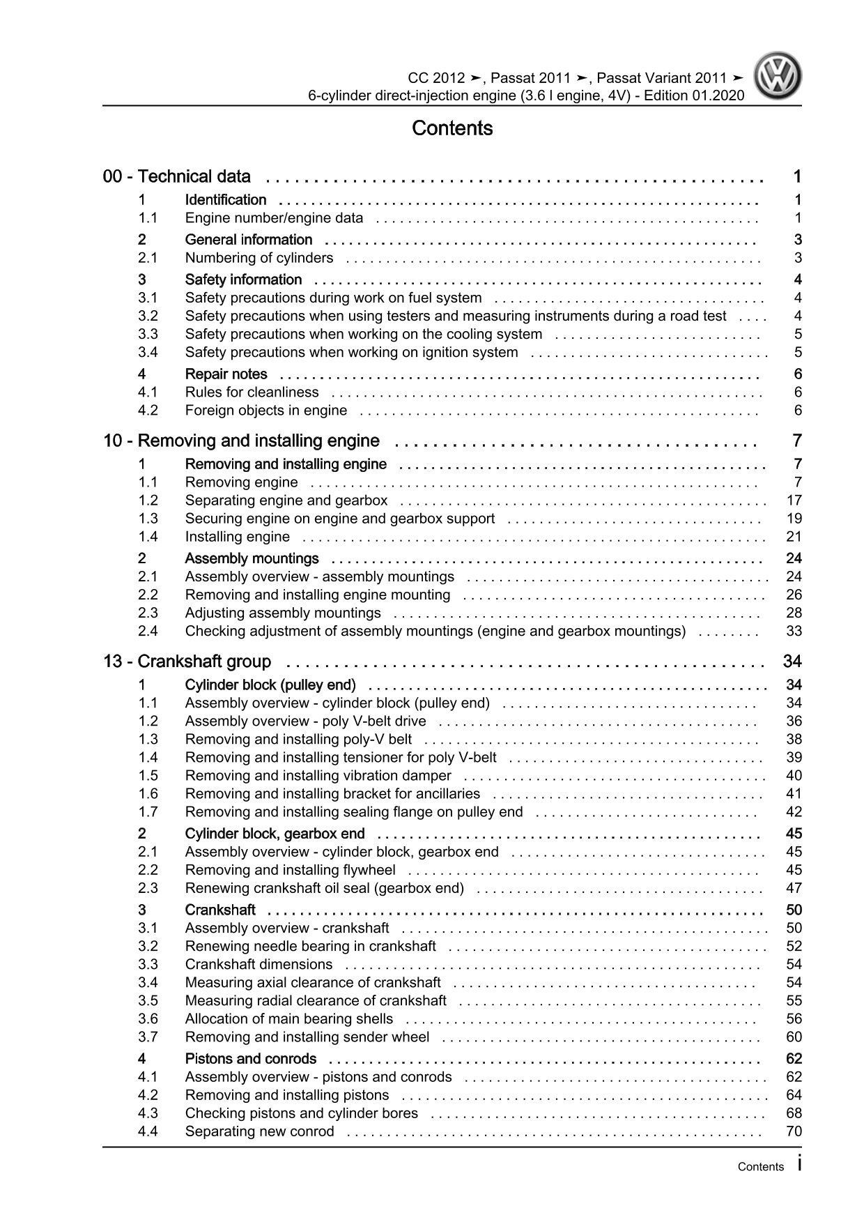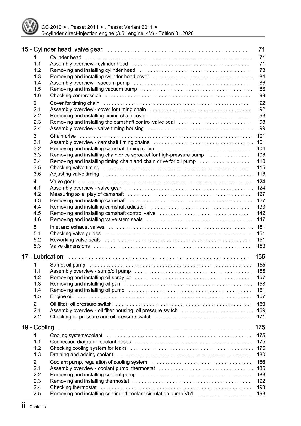VW Passat CC 35 12-16 6-cyl 3.6l petrol engine 280-300 hp repair workshop eBook