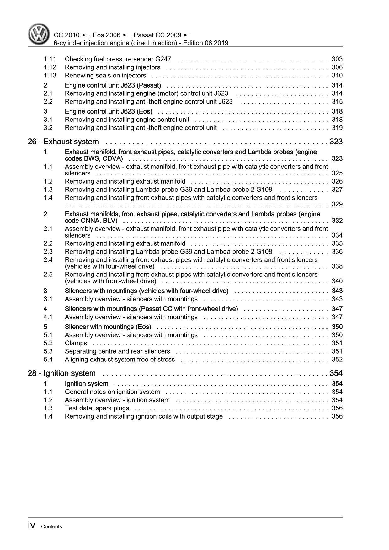 VW Passat CC 35 2008-2012 6-cyl. 3.6l petrol engines 260-300 hp repair pdf eBook