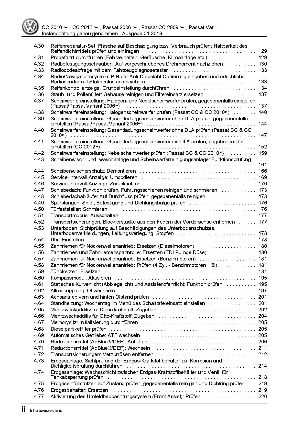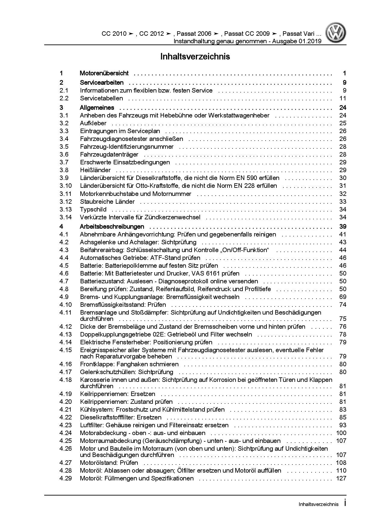 VW Passat CC 35 2008-2016 Instandhaltung Inspektion Wartung Reparaturanleitung
