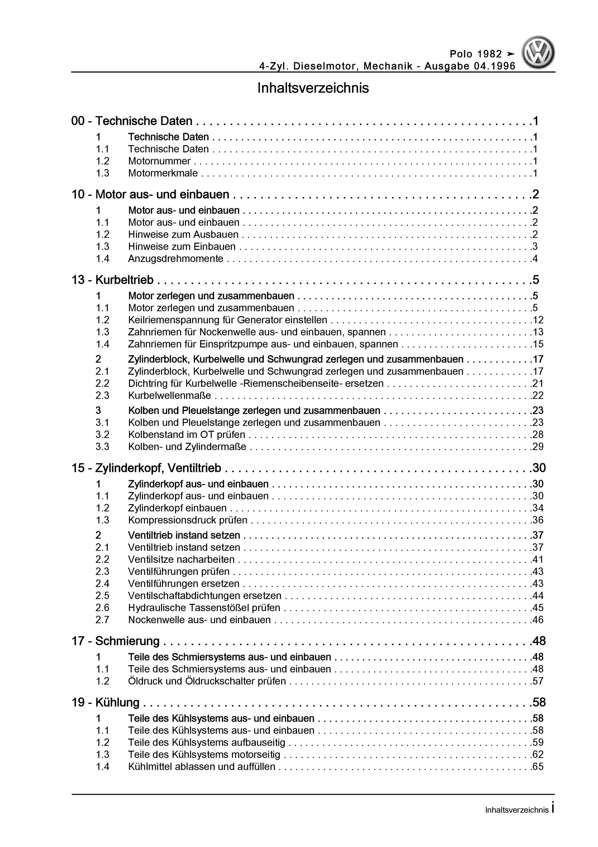 VW Polo 2 Typ 86C (81-94) 1,3l 1,4l Dieselmotor TDI 45-48 PS Reparaturanleitung