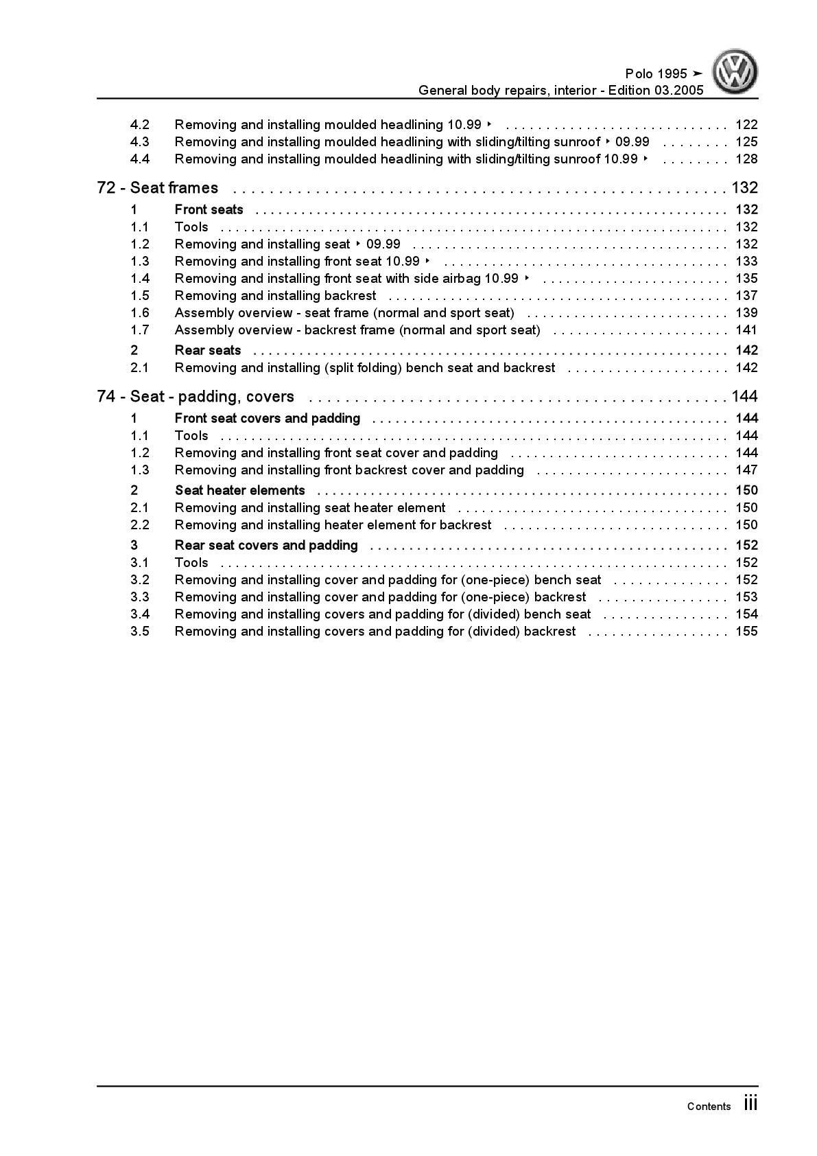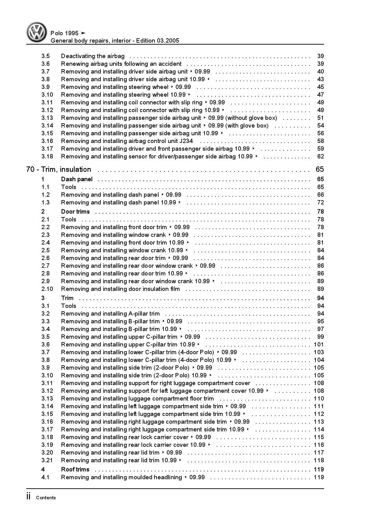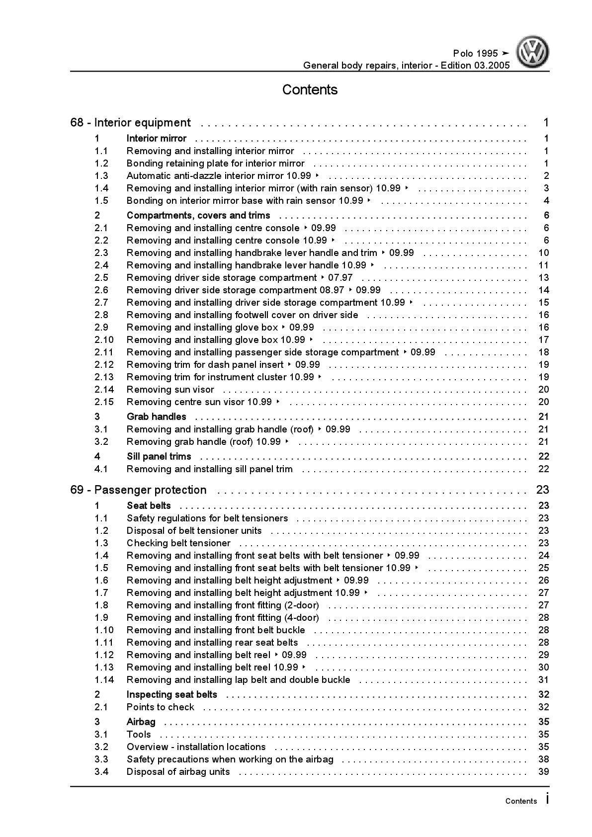 VW Polo 3 6N 1994-2002 general body repairs interior repair workshop manual pdf