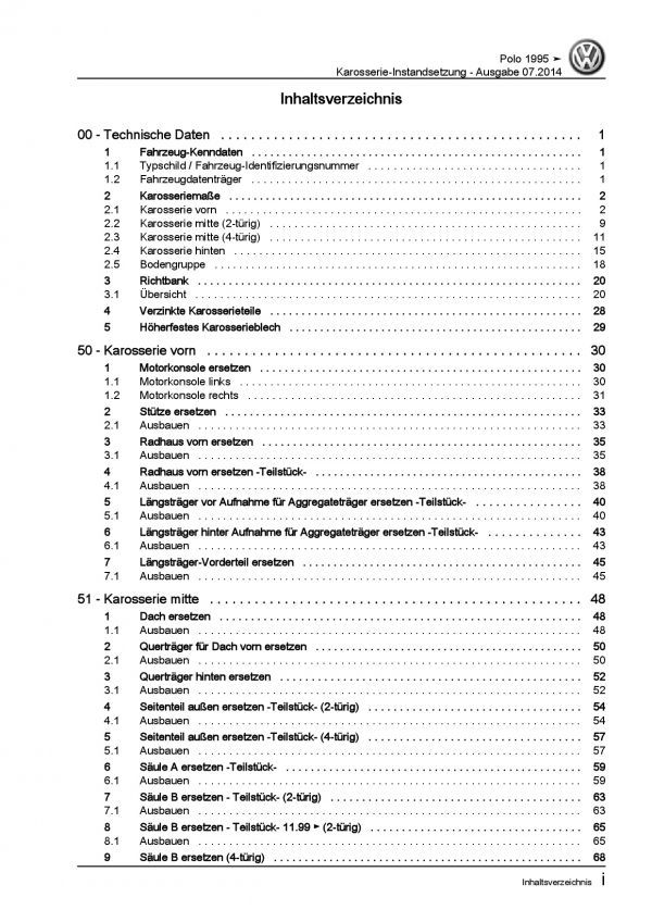 VW Polo 3 Typ 6N 1994-2002 Karosserie Unfall Instandsetzung Reparaturanleitung