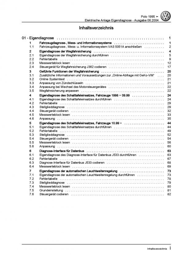 VW Polo 3 Typ 6N (94-02) Eigendiagnose Elektrische Anlage Reparaturanleitung