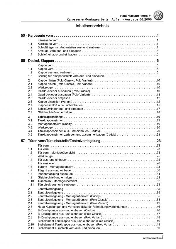 VW Polo 3 Variant 1997-2001 Karosserie Montagearbeiten Außen Reparaturanleitung