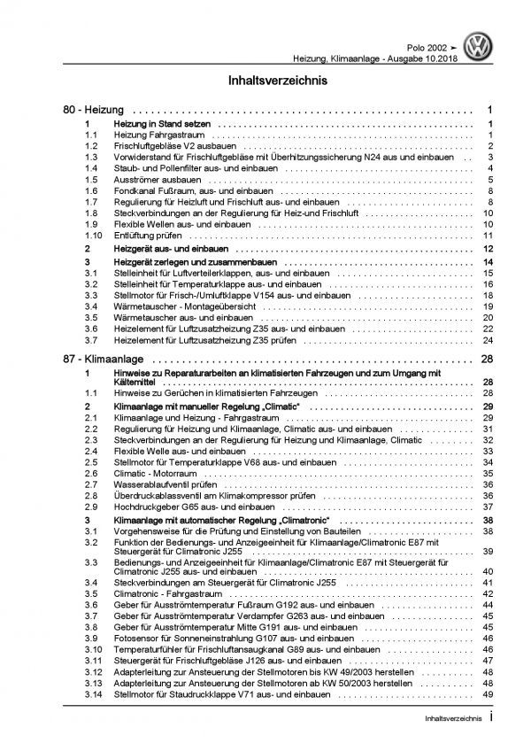 VW Polo 4 Typ 9N 2001-2010 Heizung Belüftung Klimaanlage Reparaturanleitung
