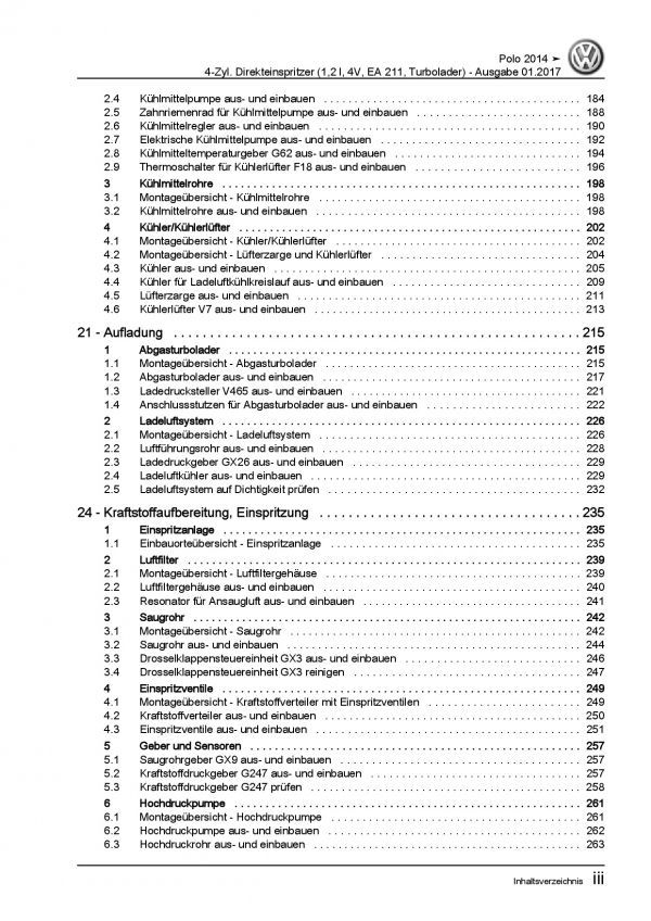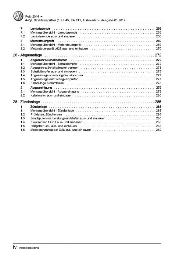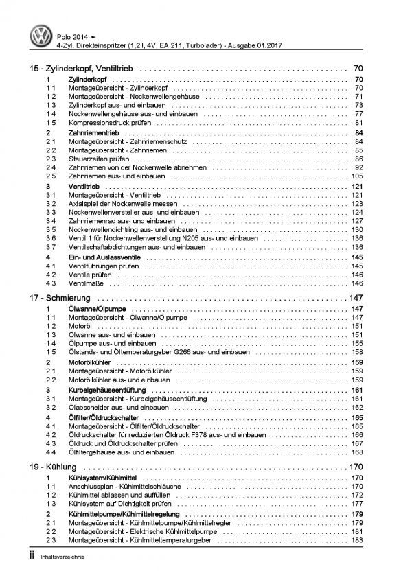 VW Polo 5 Typ 6C 2014-2017 4-Zyl. 1,2l Benzinmotor 90-110 PS Reparaturanleitung