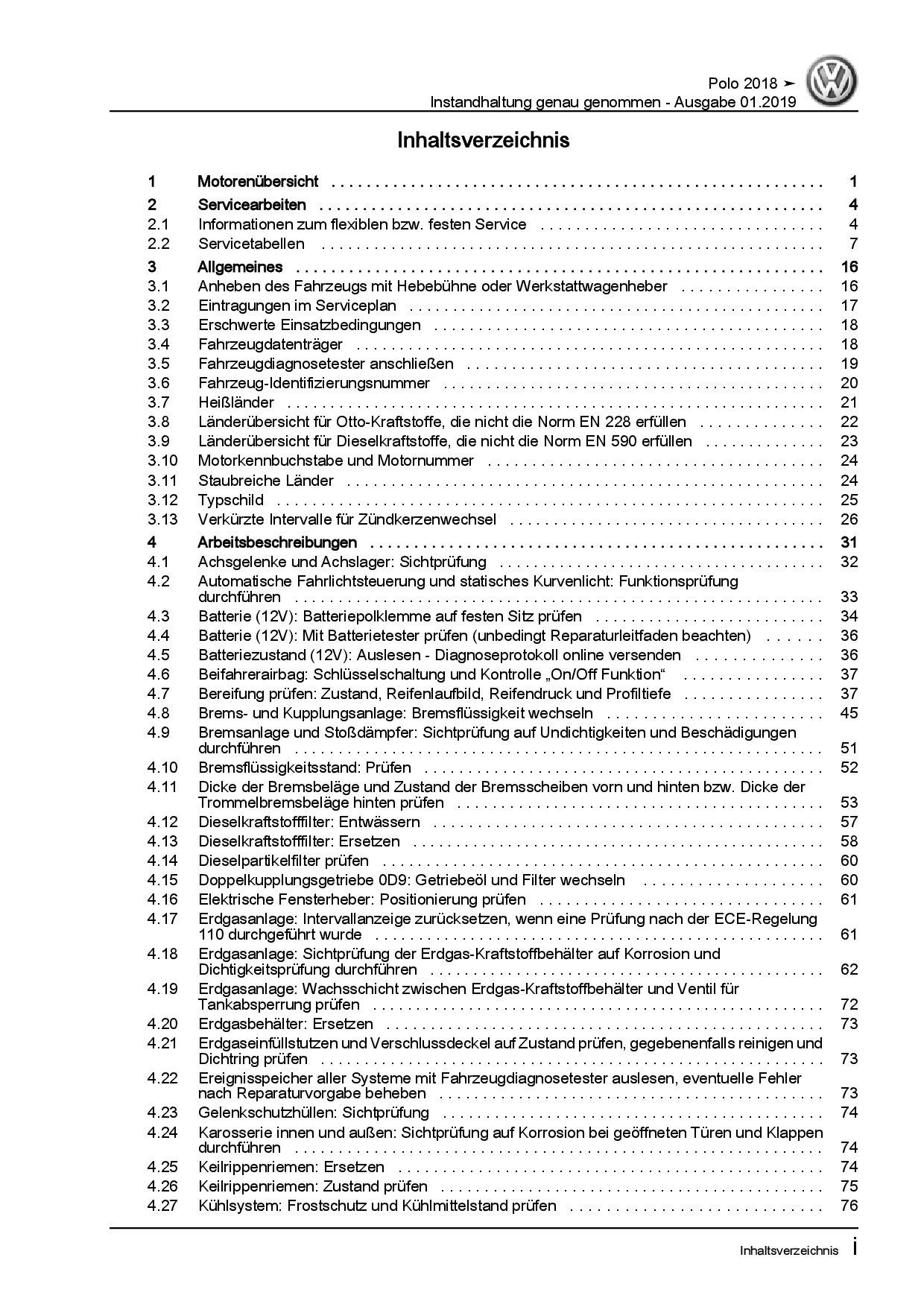 VW Polo Typ AW ab 2018 Instandhaltung Inspektion Wartung Reparaturanleitung PDF