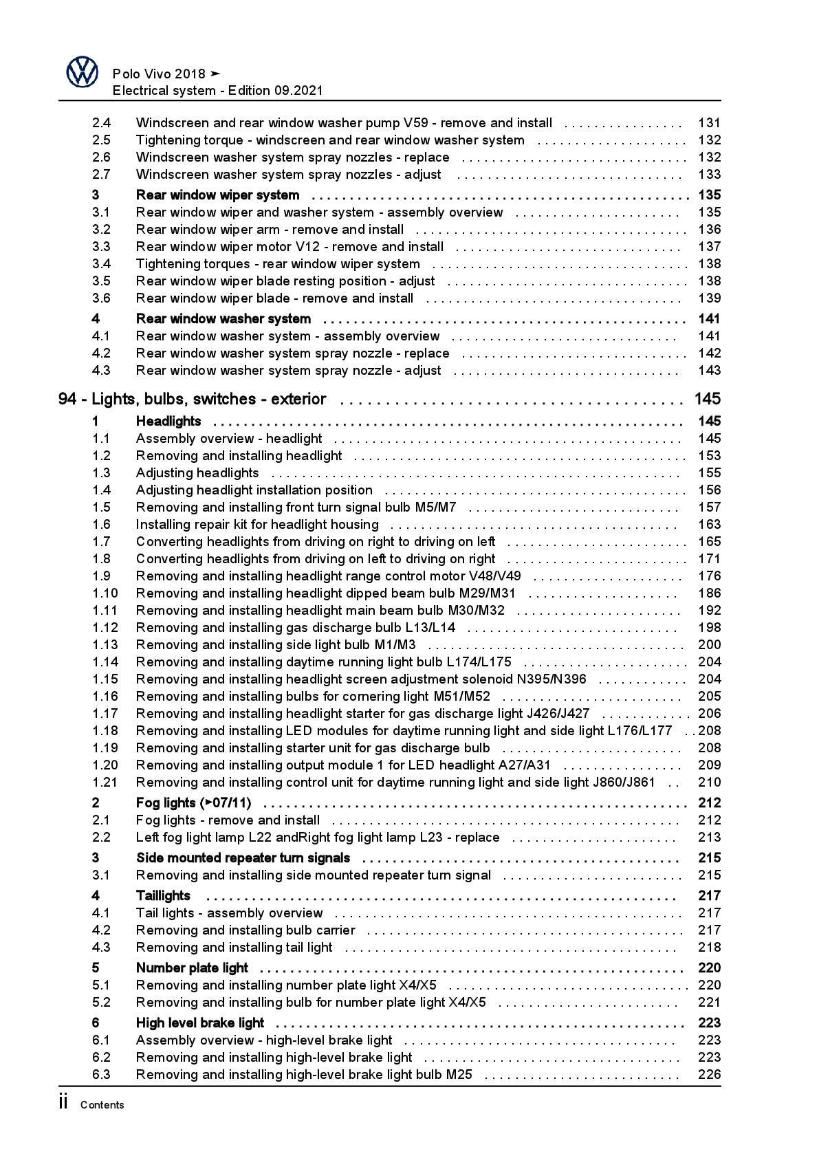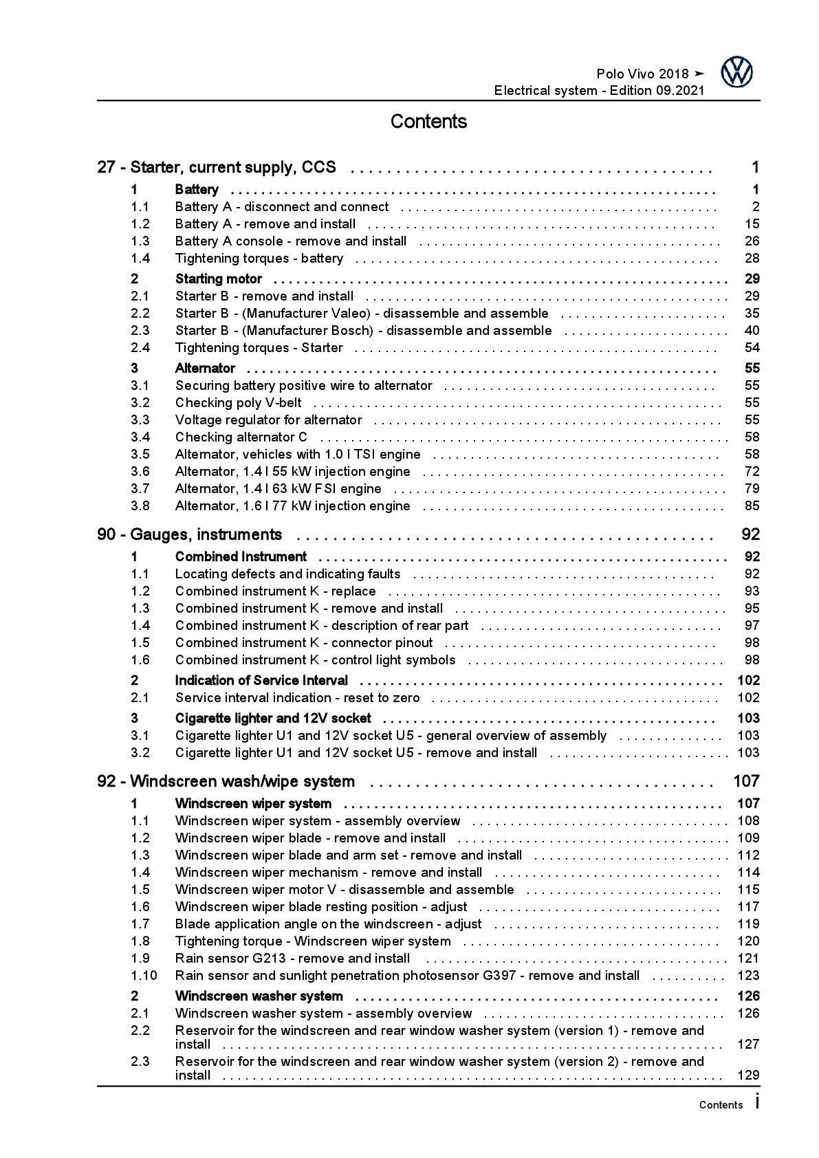 VW Polo Vivo type 6R from 2017 electrical system repair workshop manual pdf