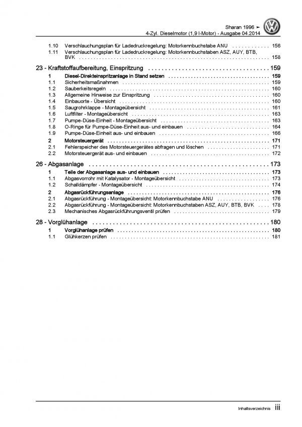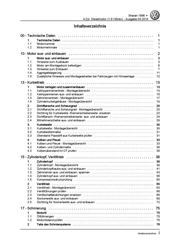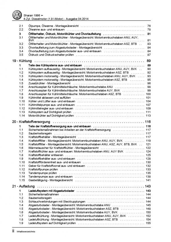 VW Sharan 7M 1995-2010 4-Zyl. 1,9l Dieselmotor TDI 90-150 PS Reparaturanleitung