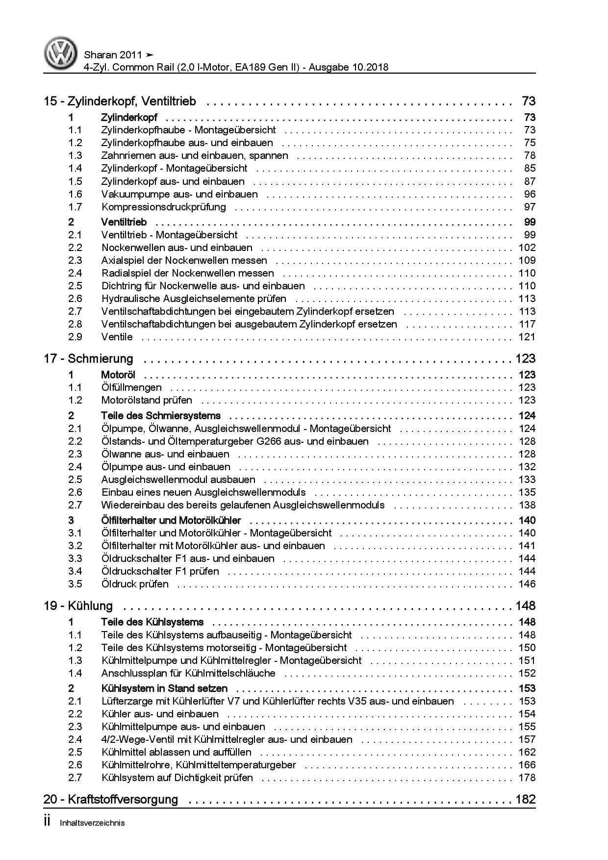 Artikelart: VW Service Reparaturleitfaden Thema / Inhalt: 4-Zyl. Dieselmotor (Common Rail, EA189 Gen II) Kraftstoffart: Diesel Motorkennbuchstaben (MKB): CFFA, CFFB, CFGB, CFFE, CFGC Motorleistung in kW/PS: 85, 100, 103, 125, 130 kW / 115, 135, 140, 170, 177 PS Hubraum: 2,0l