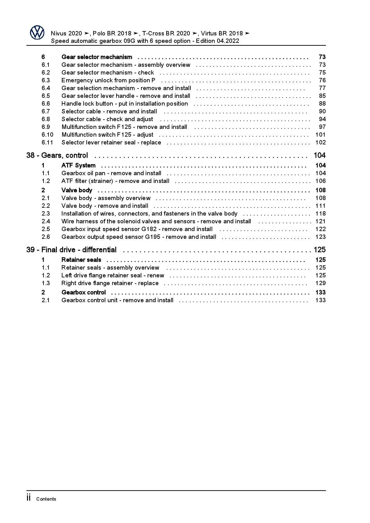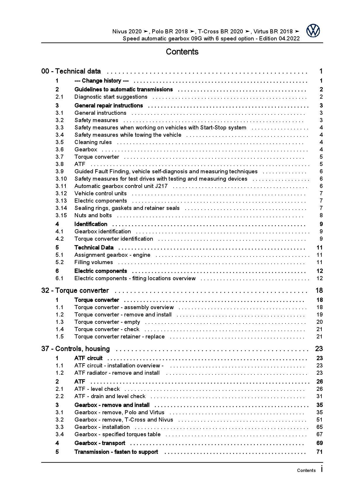 VW T-Cross BR C1 (19>) 6 speed automatic gearbox 09G repair workshop manual pdf
