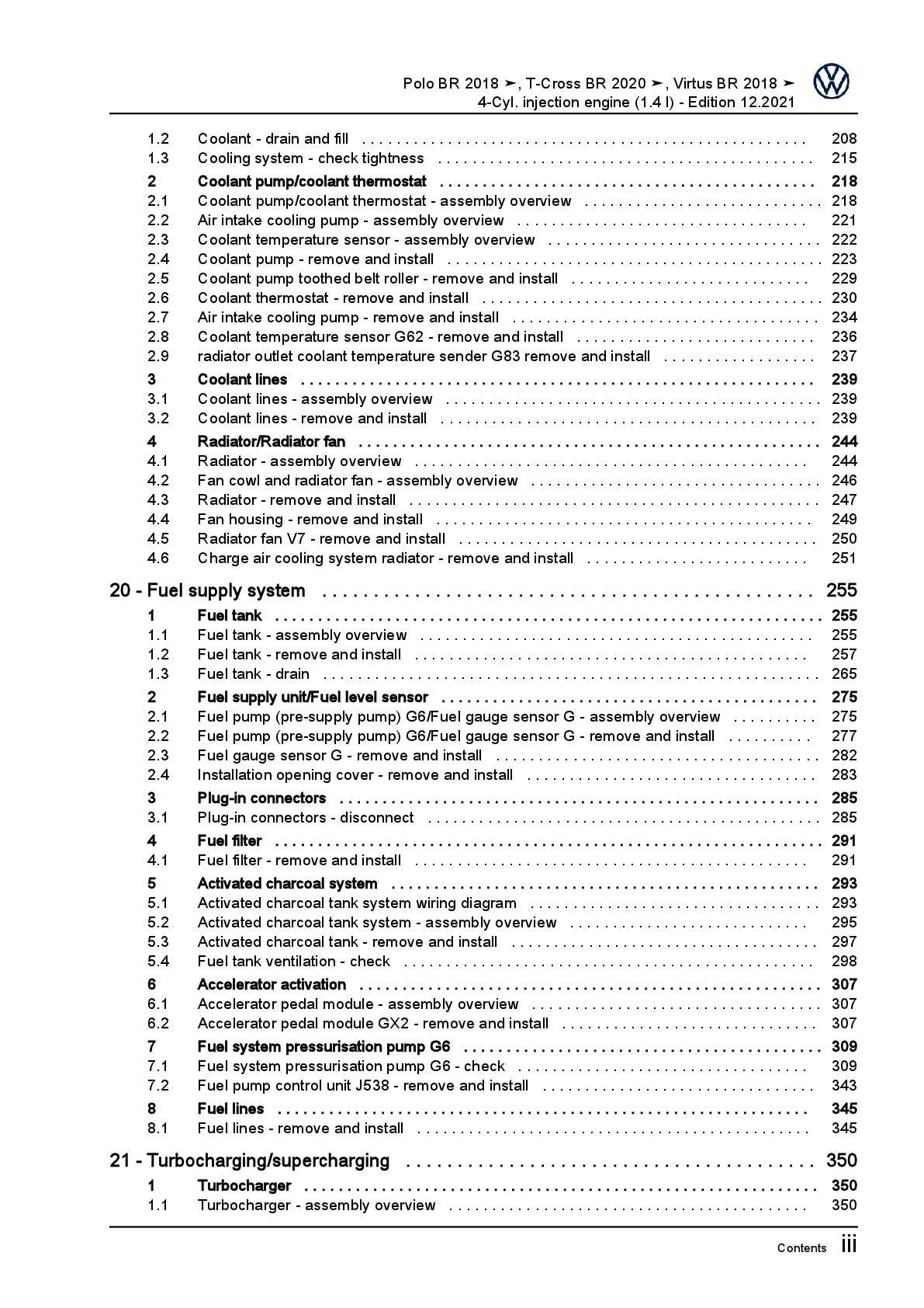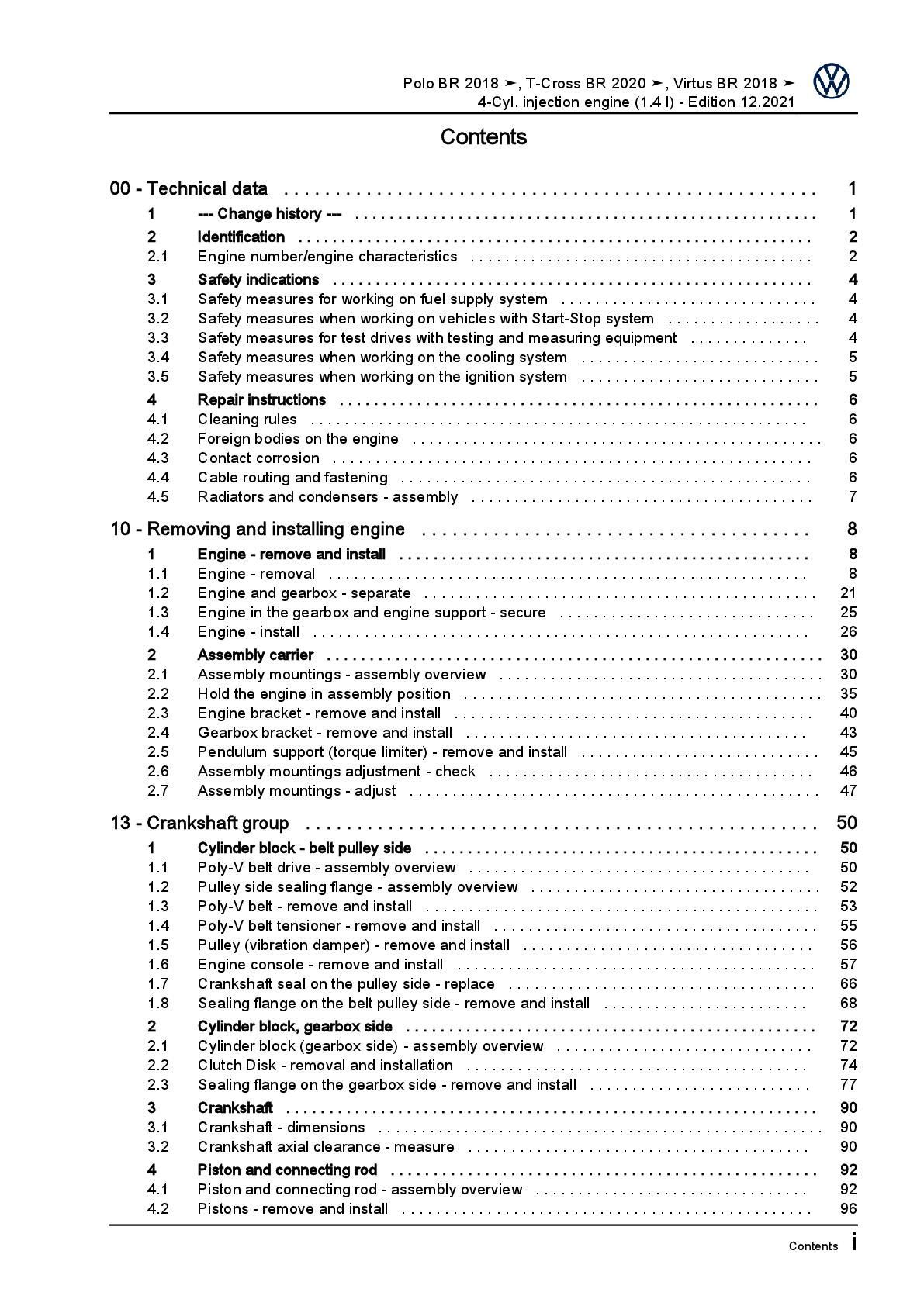 VW T-Cross BR C1 from 2019 4-cyl. 1.4l petrol engines 150 hp workshop manual pdf