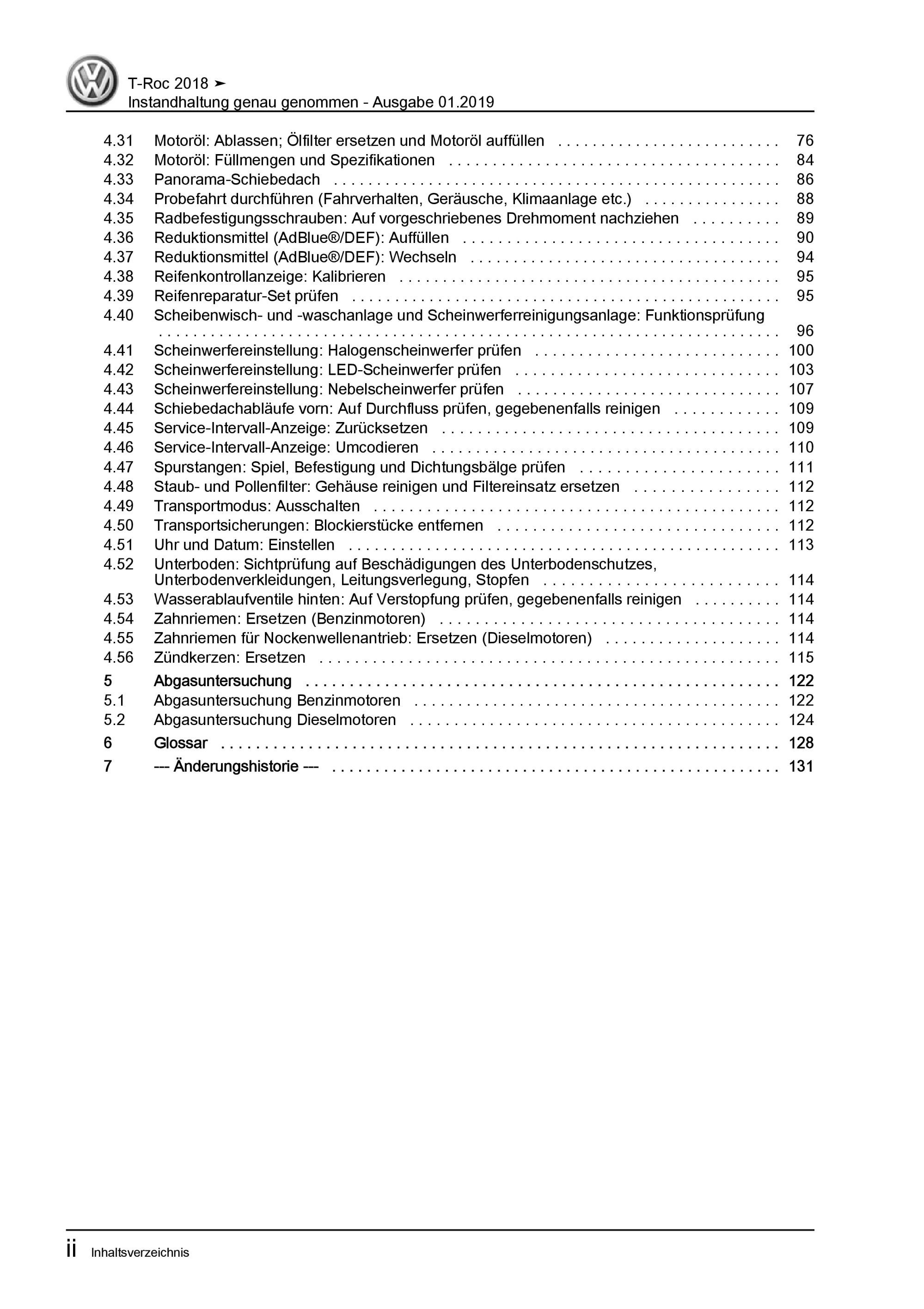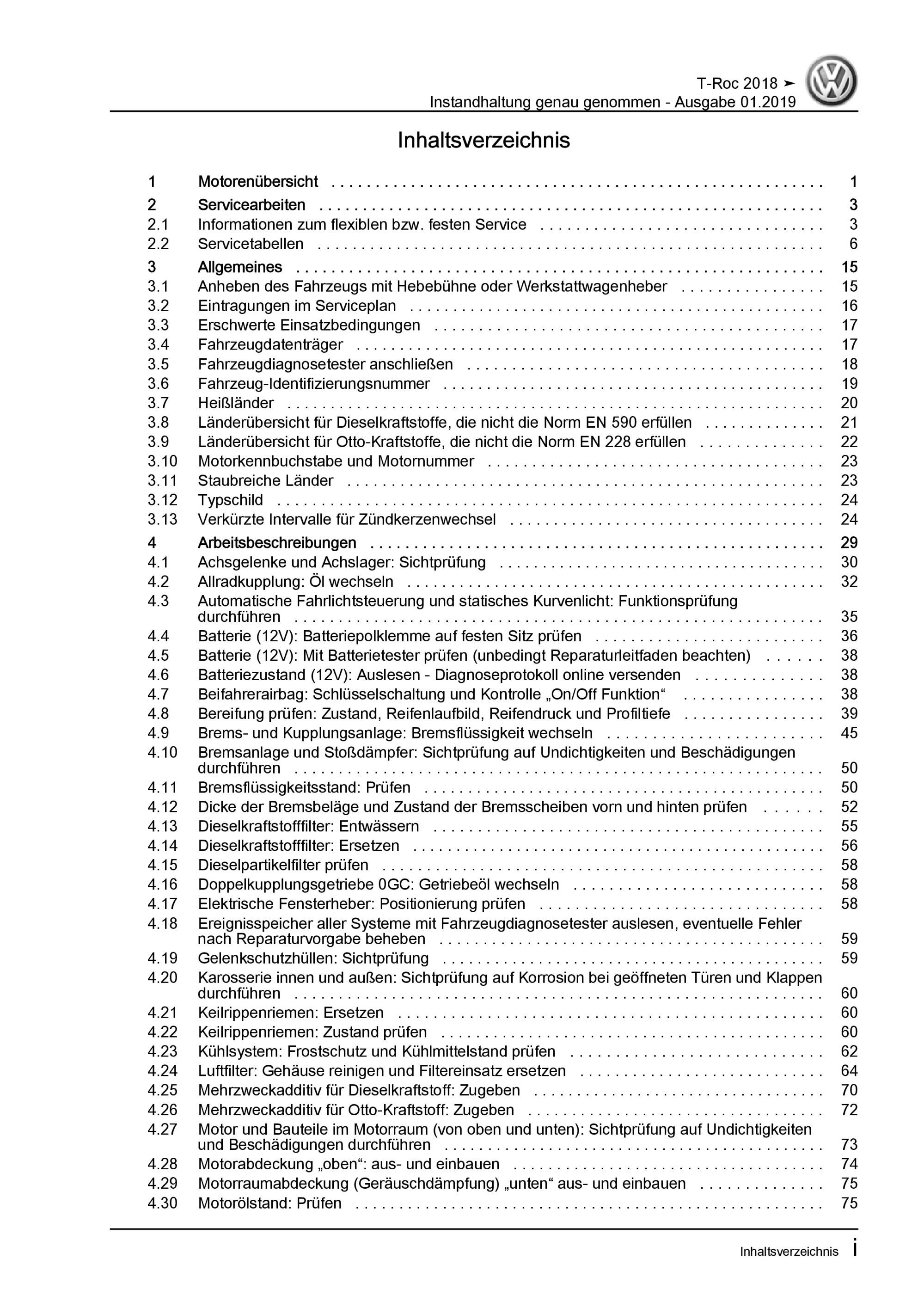 VW T-Roc Typ A1 ab 2017 Instandhaltung Inspektion Wartung Reparaturanleitung