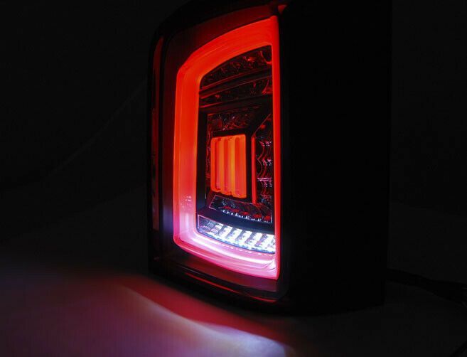 Artikelbezeichnung 1 Satz (2 Stück) Voll LED Lightbar Rückleuchten in schwarz-Smoke Glas + LED Dynamik Lauflicht Blinker für VW T5 Bus Caravelle Multivan, nur für Modelle mit Heckklappe Baujahr 2003-2015 (2 verschiedene Stecker für die jeweiligen Modelle) Europaweit zugelassen im Bereich der STVZO L
