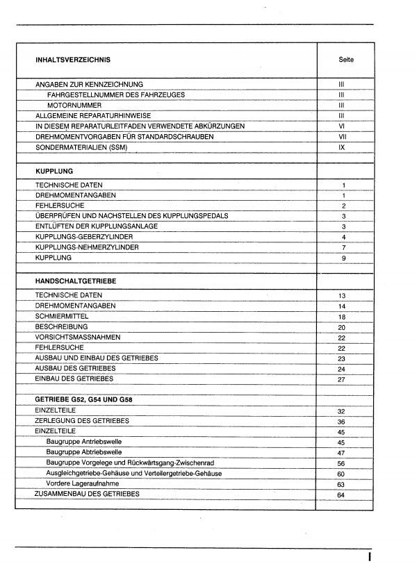 VW Taro 7A (89-97) Kupplung Schaltgetriebe G52 G54 G58 W56 Reparaturanleitung