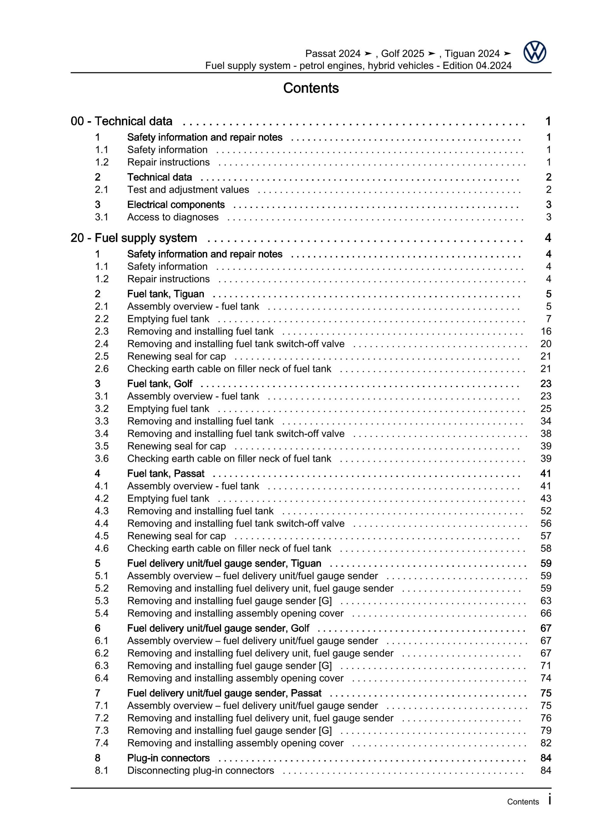 VW Tiguan 3 CT from 2023 fuel supply system petrol engines hybrid workshop eBook