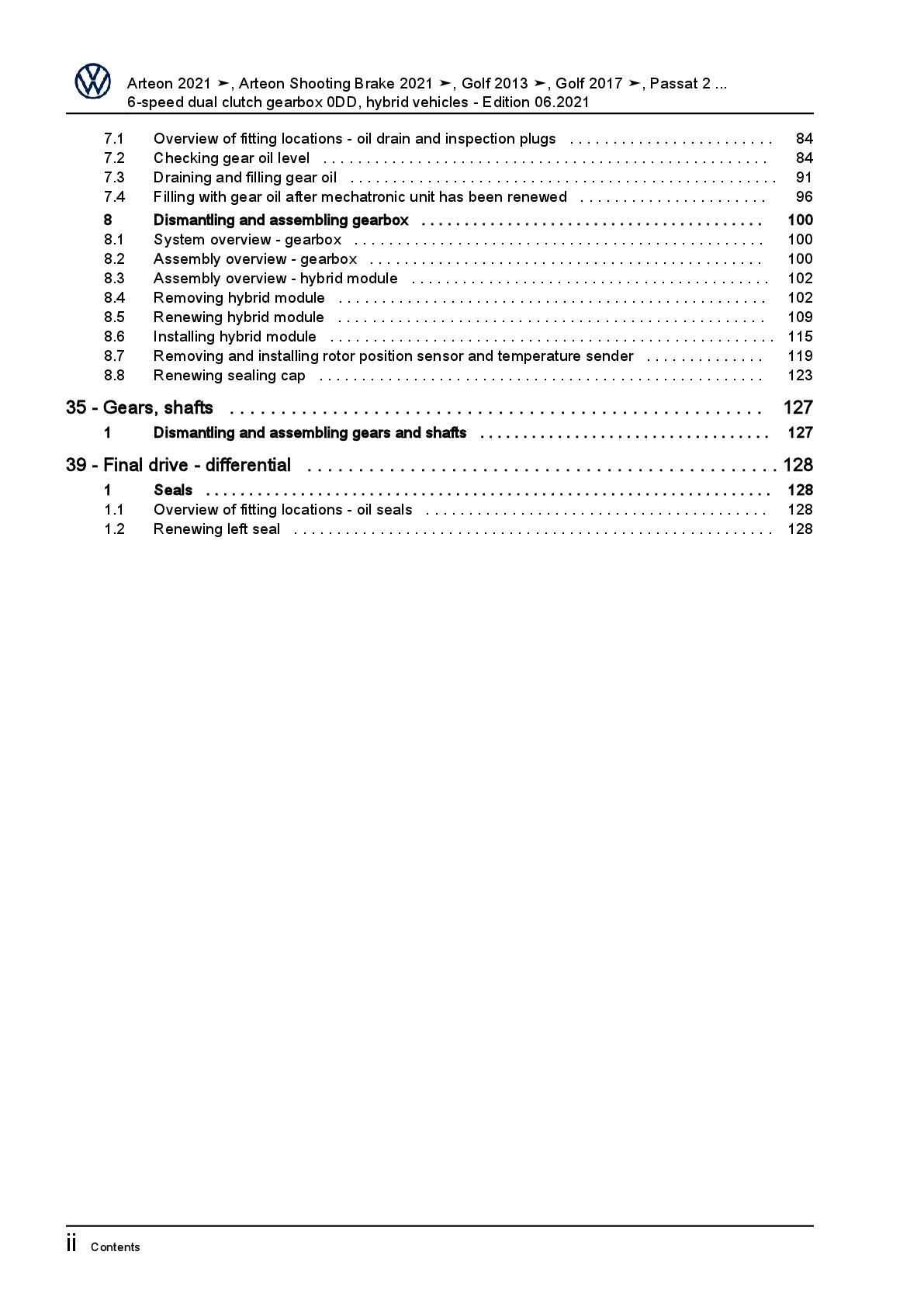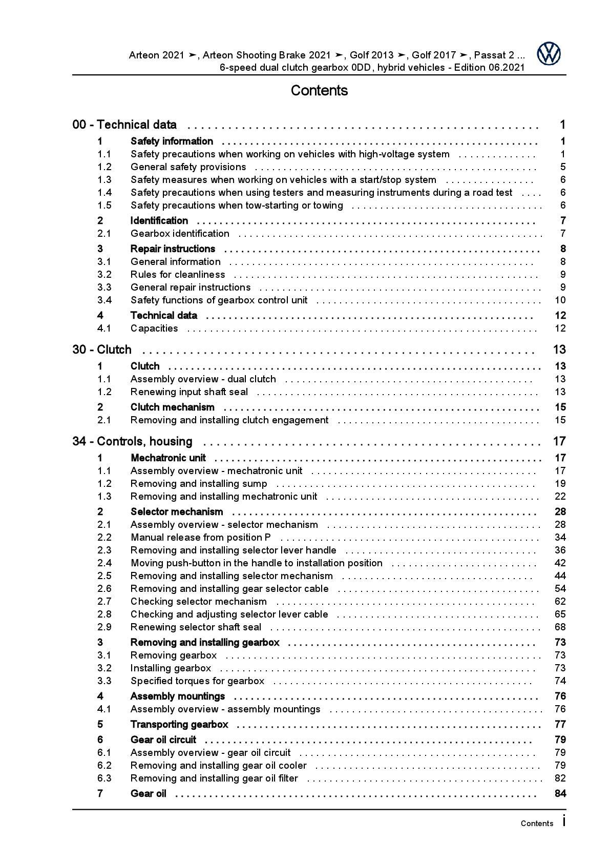 VW Tiguan AD (16-21) 6 speed dual clutch gearbox 0DD repair workshop manual pdf