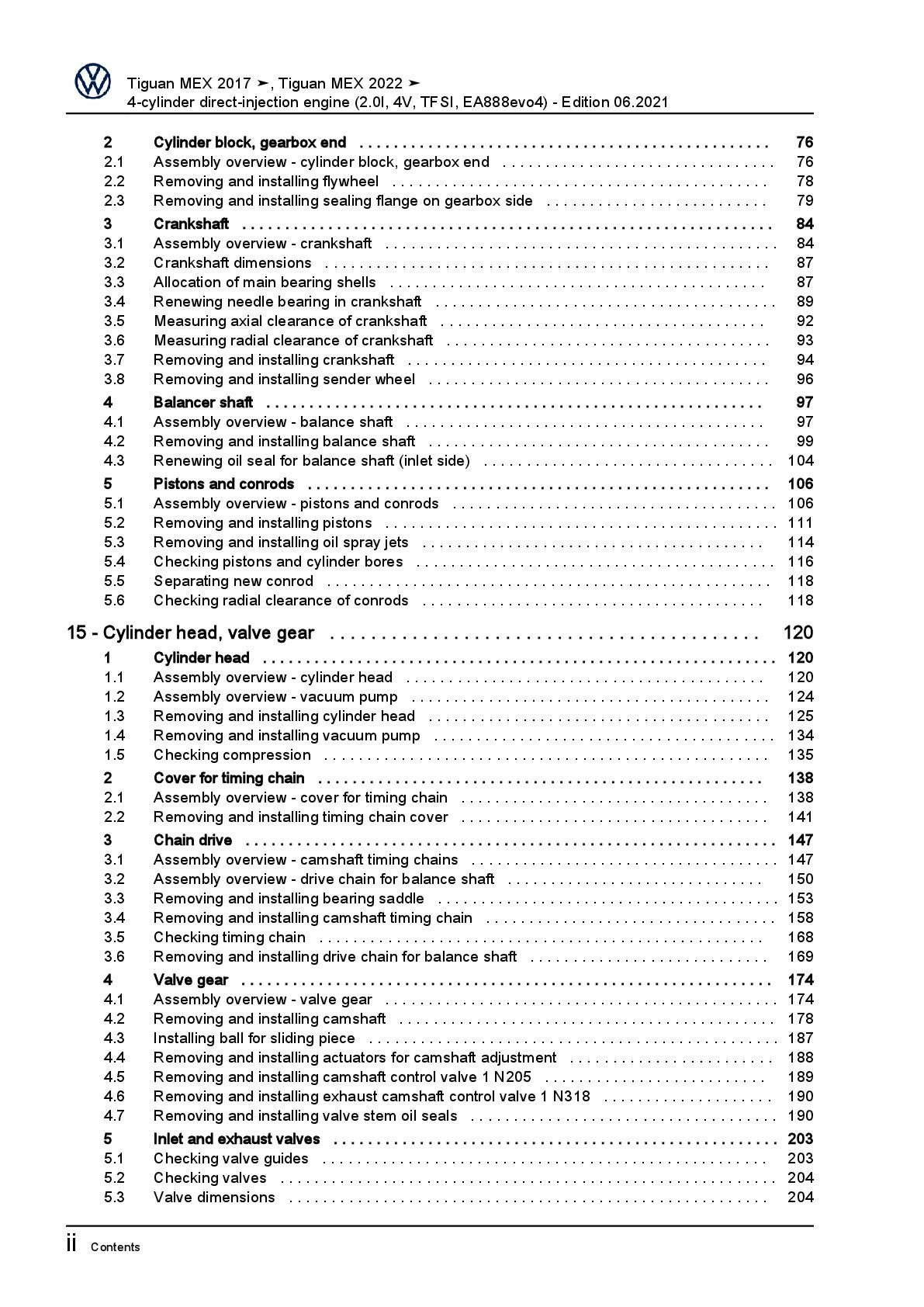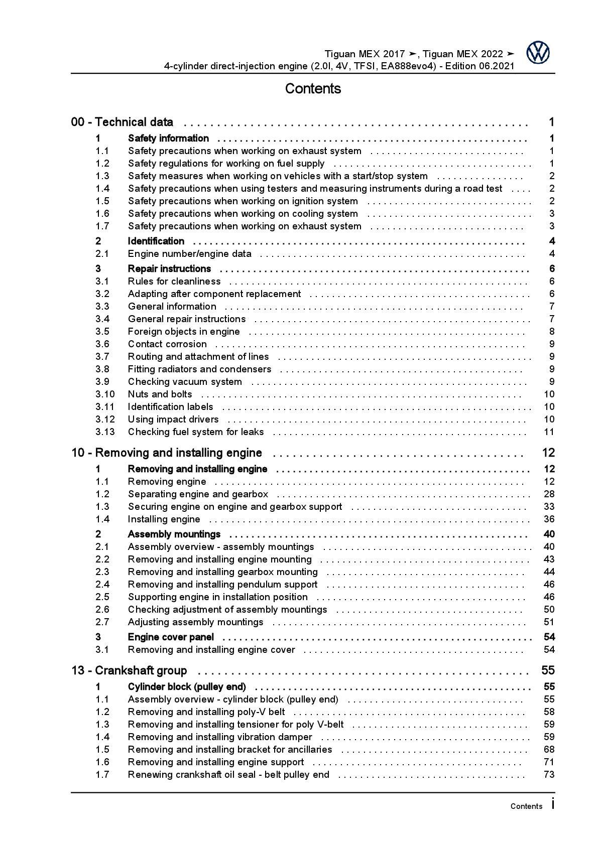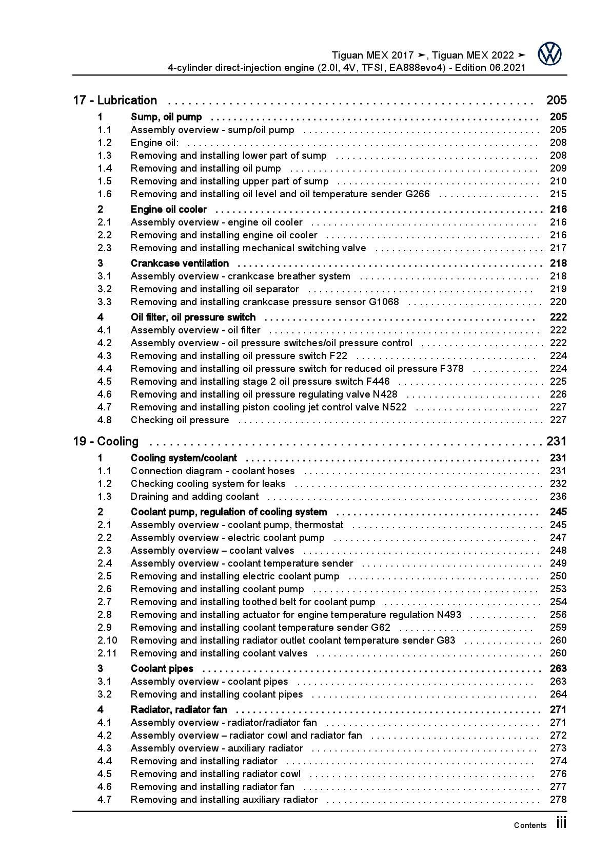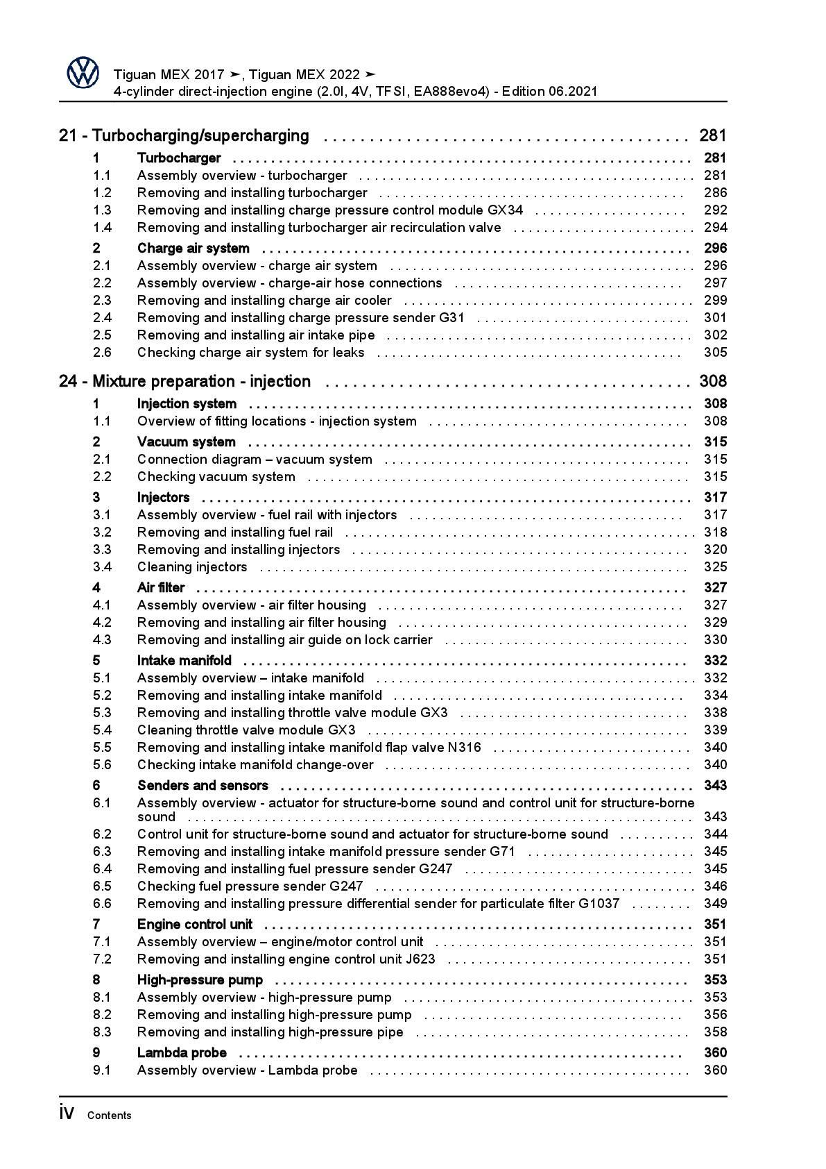 VW Tiguan BW BJ from 2017 4-cyl. petrol engines 190-245 hp repair manual pdf