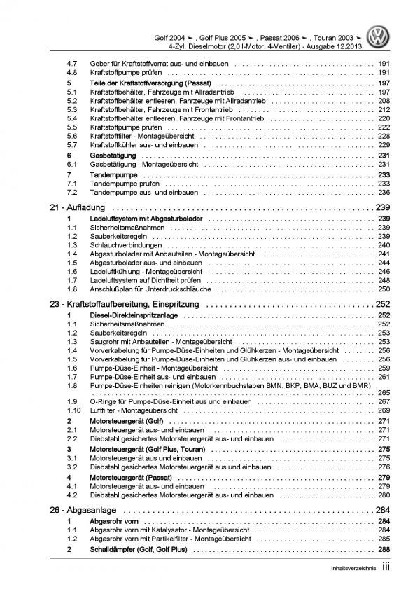 Artikelart: VW Service Reparaturleitfaden Thema / Inhalt: 4-Zyl. Dieselmotor (4-Ventiler) Kraftstoffart: Diesel Motorkennbuchstaben (MKB): AZV, BKD, BMN, BKP, BMA, BVE, BMR, BUZ, BWV Motorleistung in kW/PS: 88, 90, 100, 103, 120, 125 kW / 120, 122, 136, 140, 163, 170 PS Hubraum: 2,0l