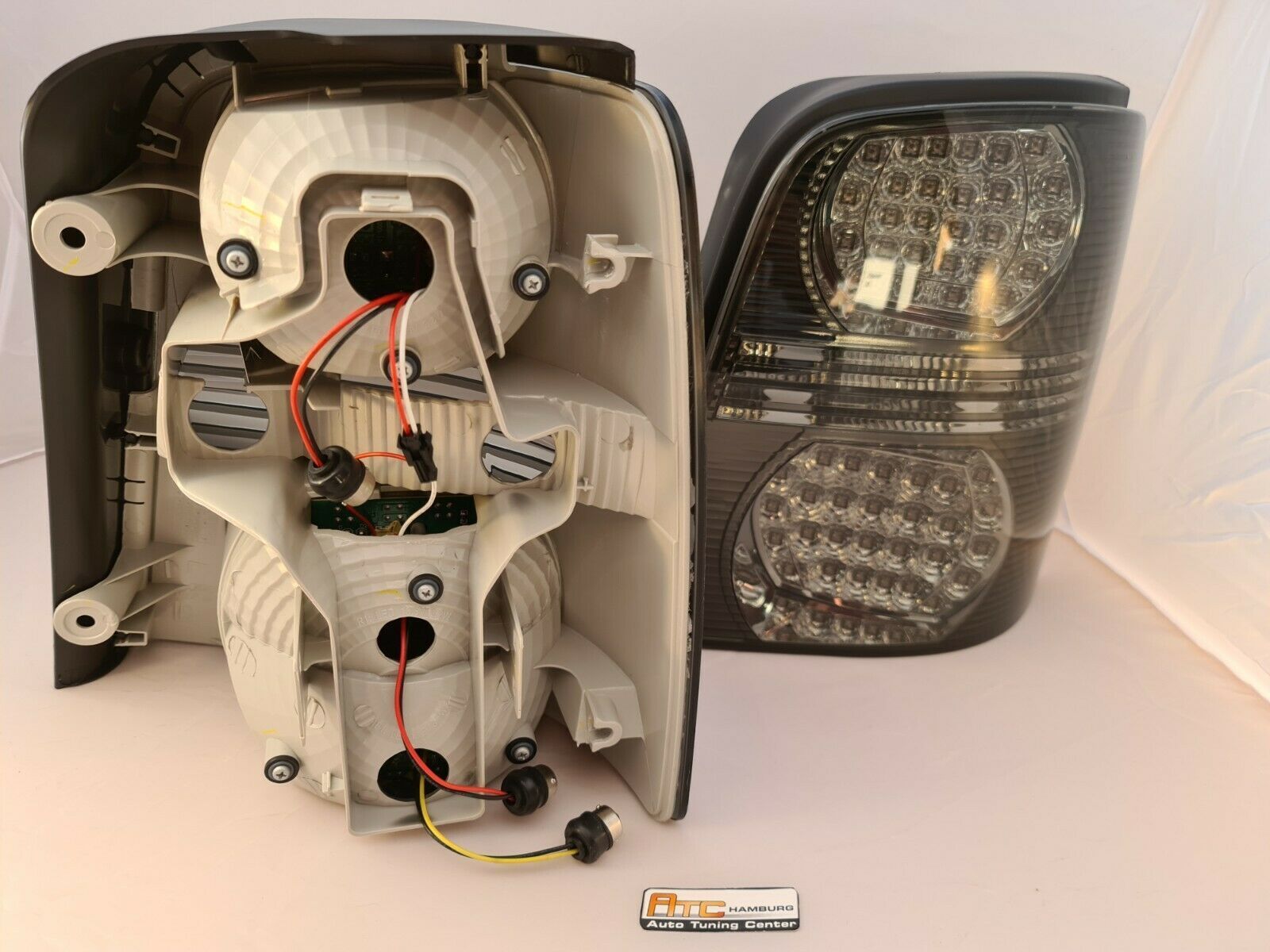 Artikelbezeichnung 1 Satz = 2 Stück links und rechts LED Rückleuchten in Schwarz Klar Glas für VW Touran 1T1 und 1T2 Modelle ab Baujahr 2.2003-2010 • europaweite Zulassung im Bereich der STVZO • im LED-Design schwarz Klarglas • mit LED Leuchtmittel ( Halogen wird von den Serien Rückleuchten übernomm