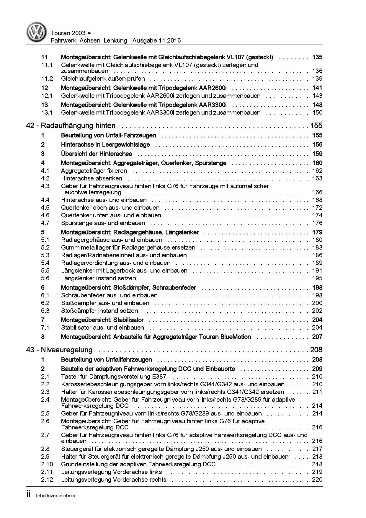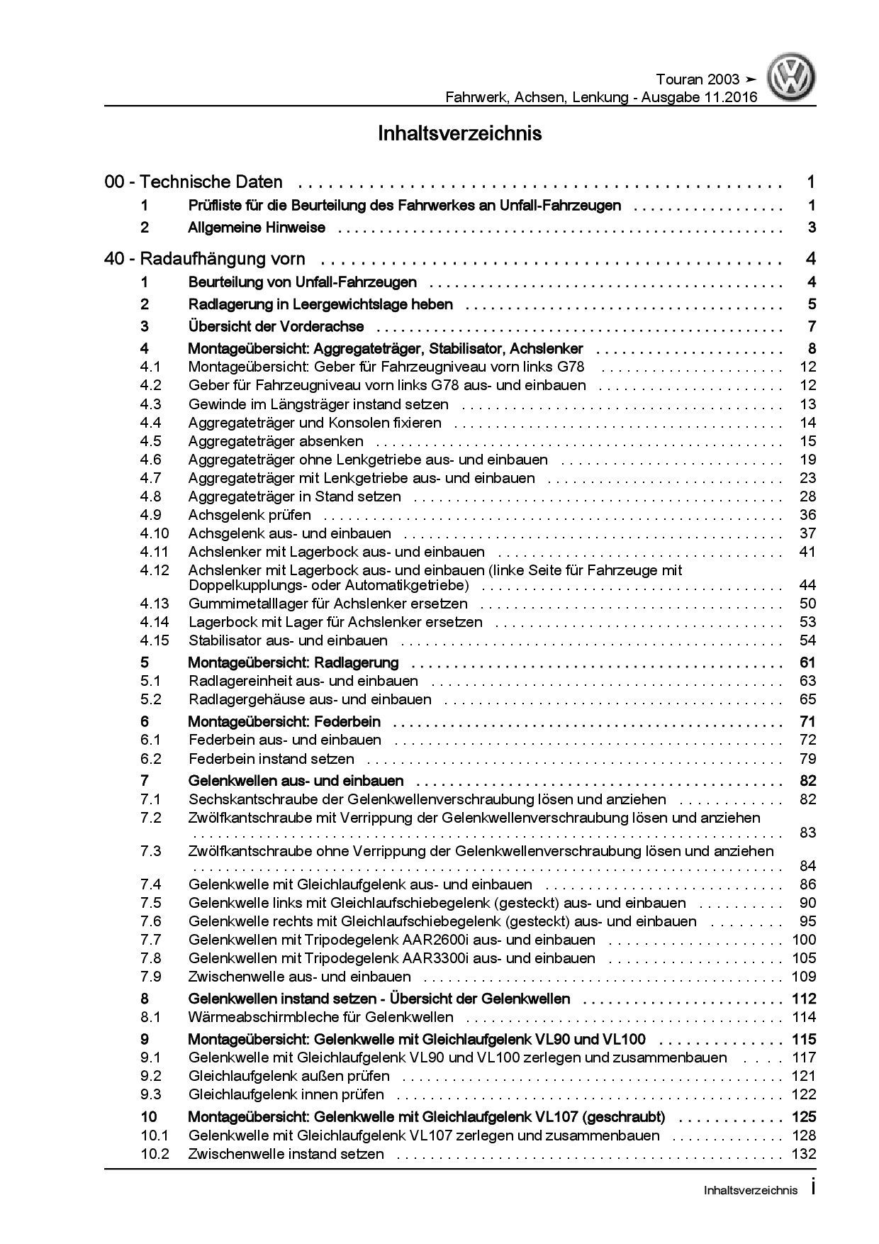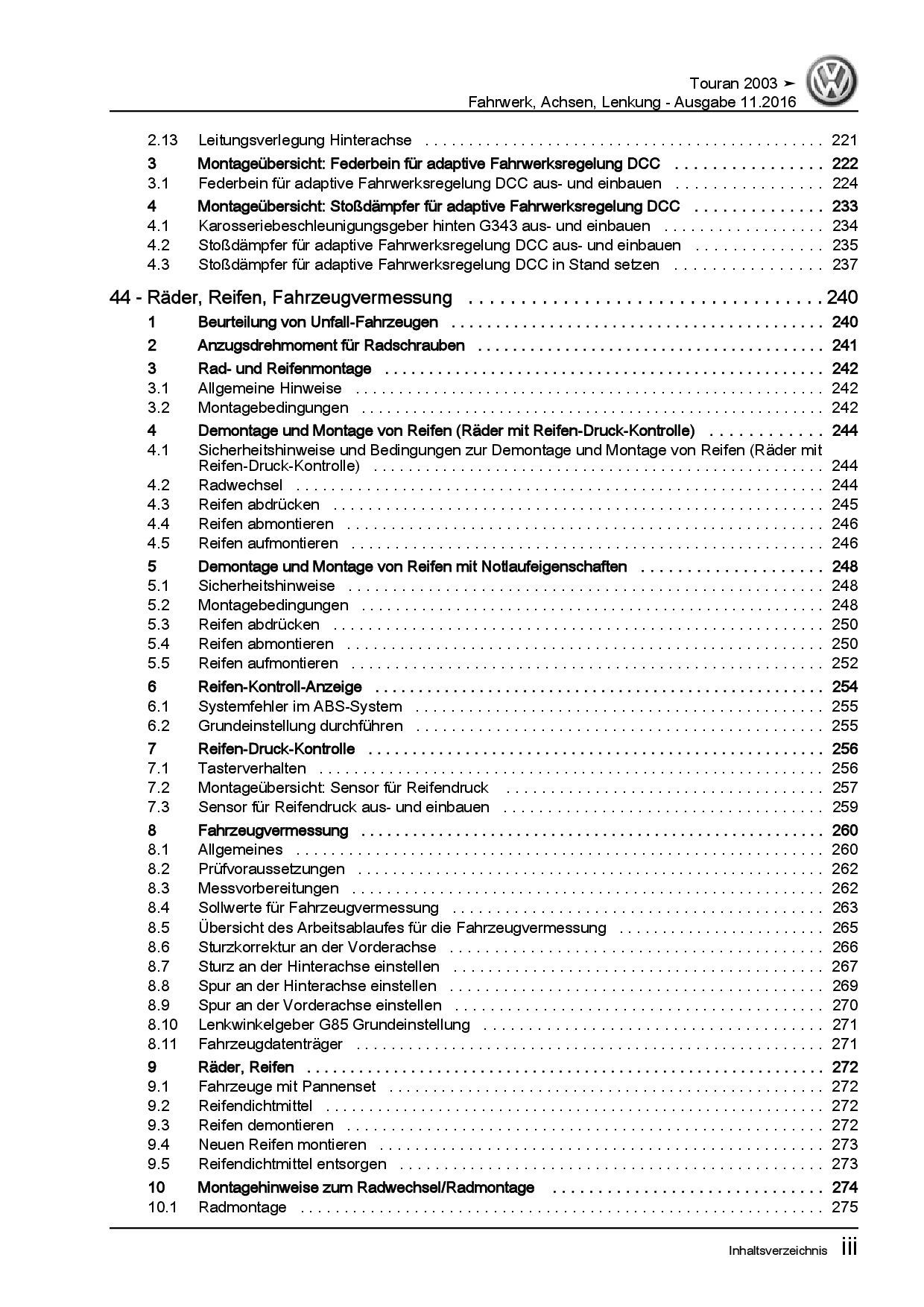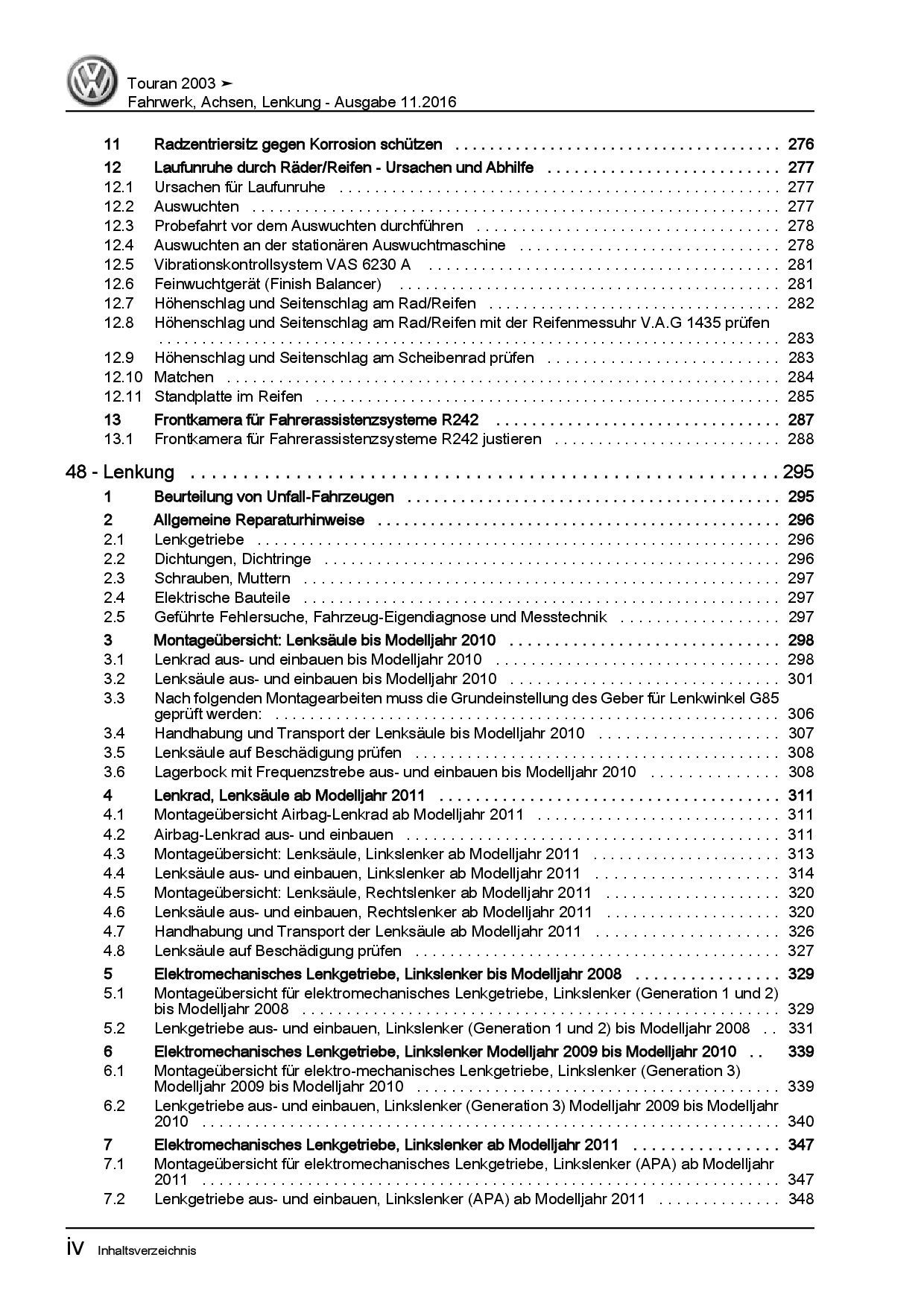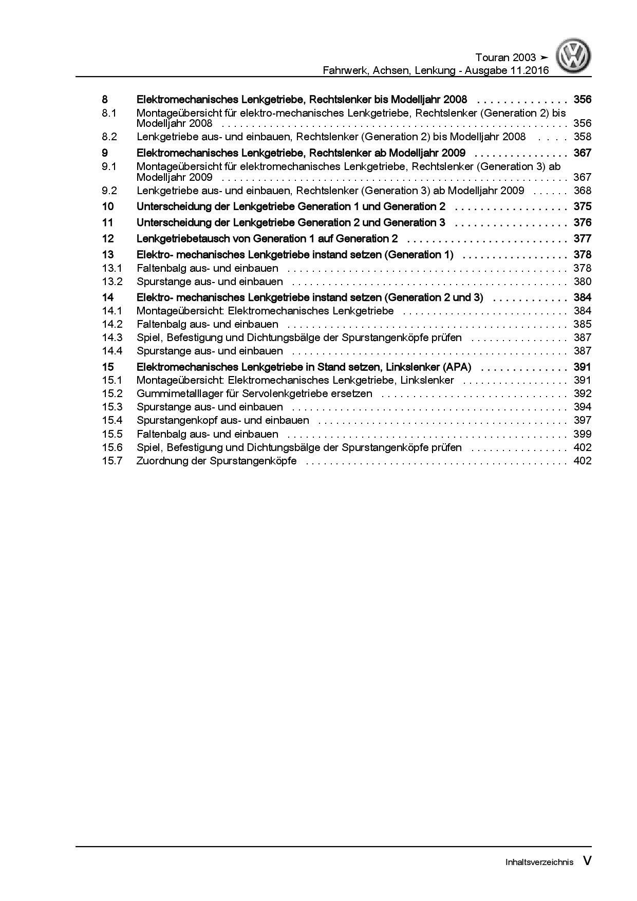 VW Touran Typ 1T 2003-2015 Fahrwerk Achsen Lenkung Reparaturanleitung PDF